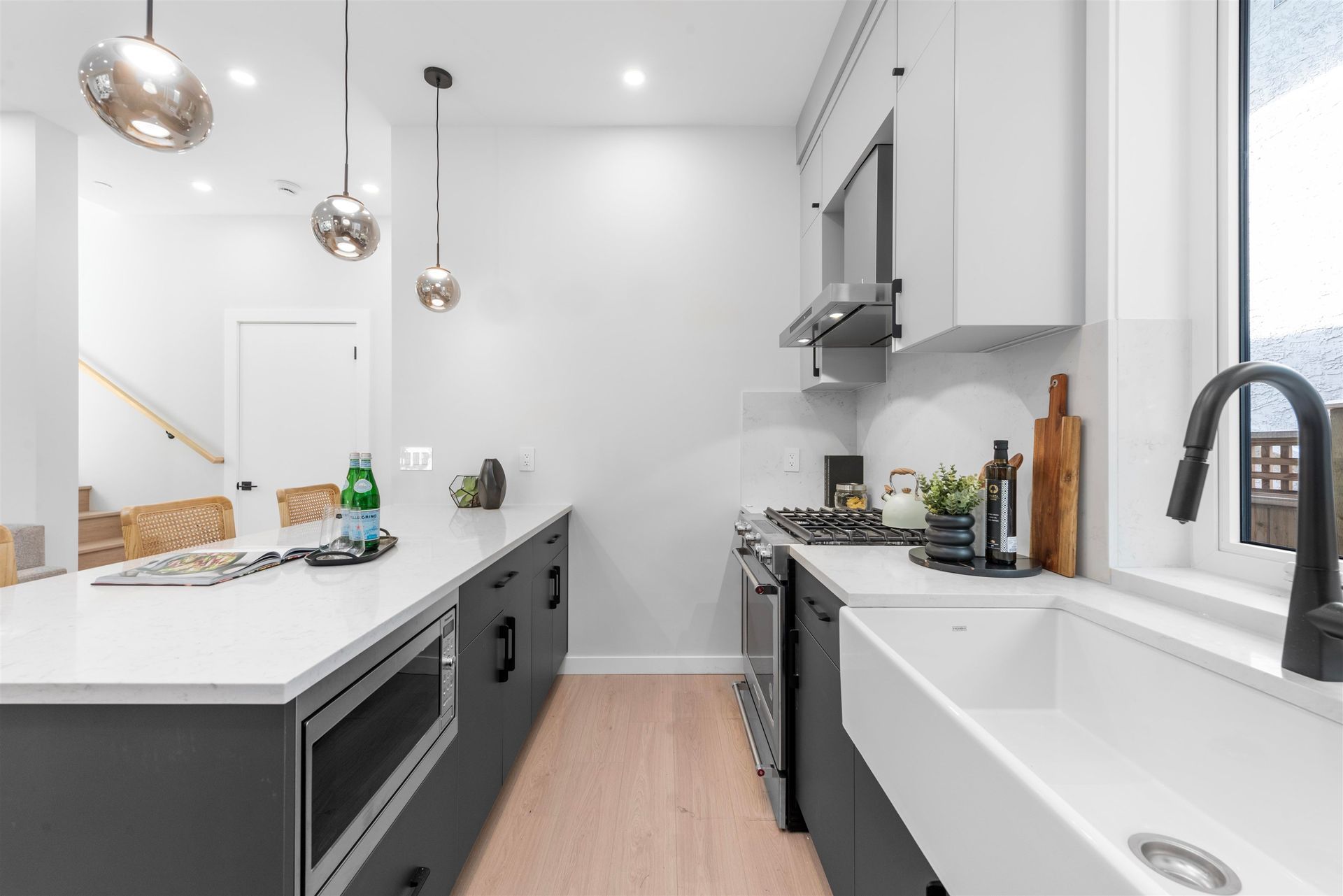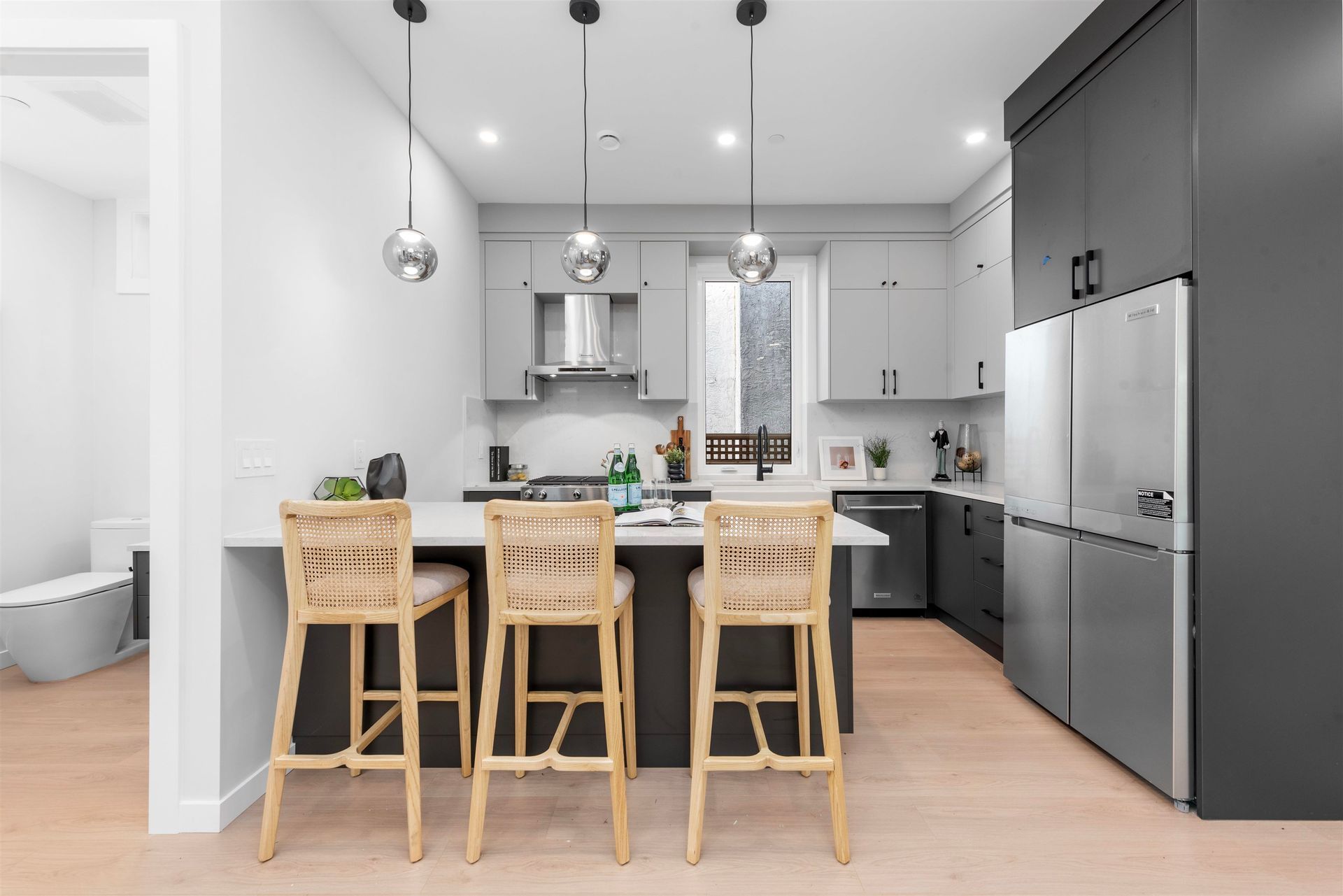 BRAND NEW FRONT duplex offers a perfect blend of style and convenience. Designed by EXPERIENCED Designer and Builder with efficiency and attracting abundance of light in mind, every room is filled with natural light from over-sized windows, combined with the attention to detail and modern finishes. The open floor plan maximizes space, with the bedrooms upstairs offer breathtaking views of the North Shore mountains and the city skyline. Located in a revitalized, family-friendly neighborhood, this home is just a short walk to both elementary and high-schools. Trout Lake Park and Community Center, Kingsway and Nanaimo SkyTrain-station are also a quick stroll away. Back Duplex is also available!