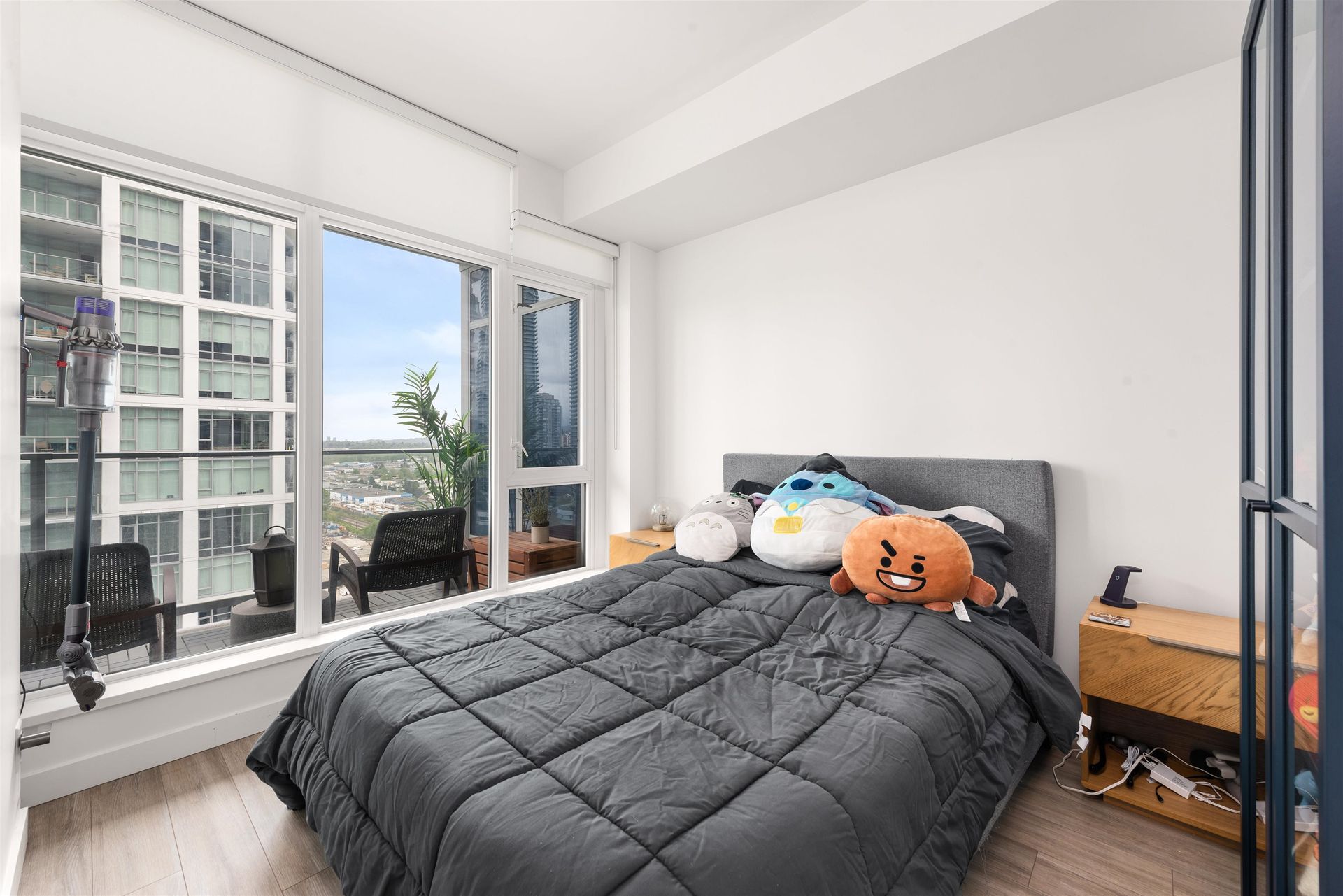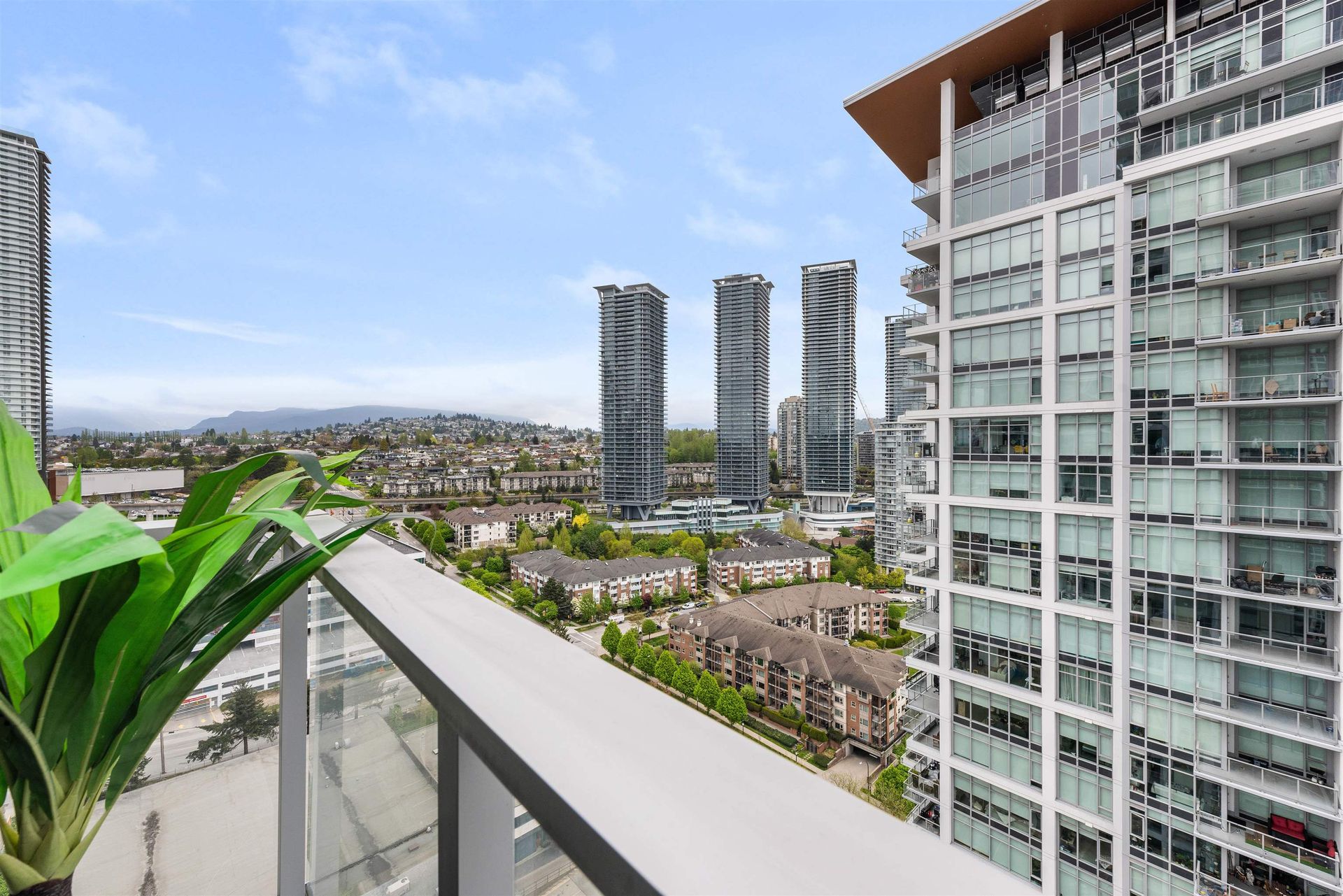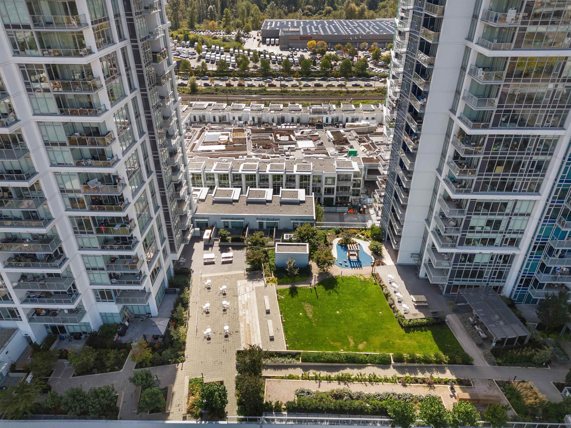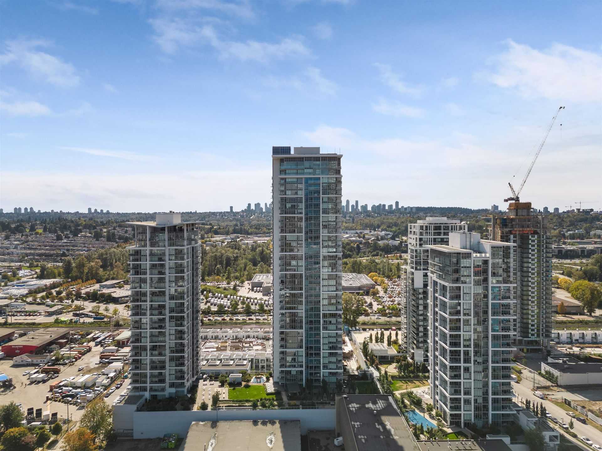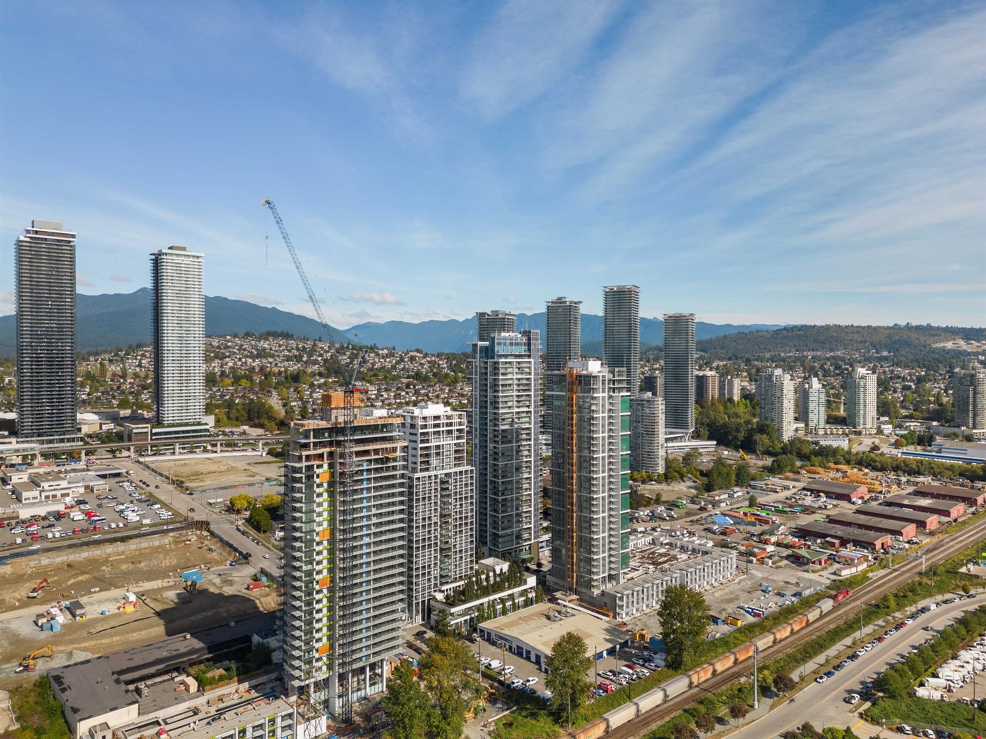 BEST VALUE 1 + DEN in Brentwood! EAST-FACING, OWNER-OCCUPIED since day day 1 home with breathtaking views from the North Shore Mountain to Mt. Baker. Smart and Spacious layout featuring a sizeable Den (Big Enough to be a 2nd bedroom) with sleek sliding glass doors. Kitchen boasts FULL SIZE Bosch appliances package with upscale cabinetry and countertops. Generously sized bedroom including a well-proportioned walk-in closet. Soak in the MORNING SUN with 9' ceilings, plus enjoy air-conditioning for year-round comfort. Stellar amenities including a fitness centre, 24 hours concierge, massive Party room and a rooftop garden. Exciting future with a planned 13-acre park nearby. Unbeatable location with steps to Brentwood Mall and Skytrain. A perfect balance of urban convenience and greenery!!