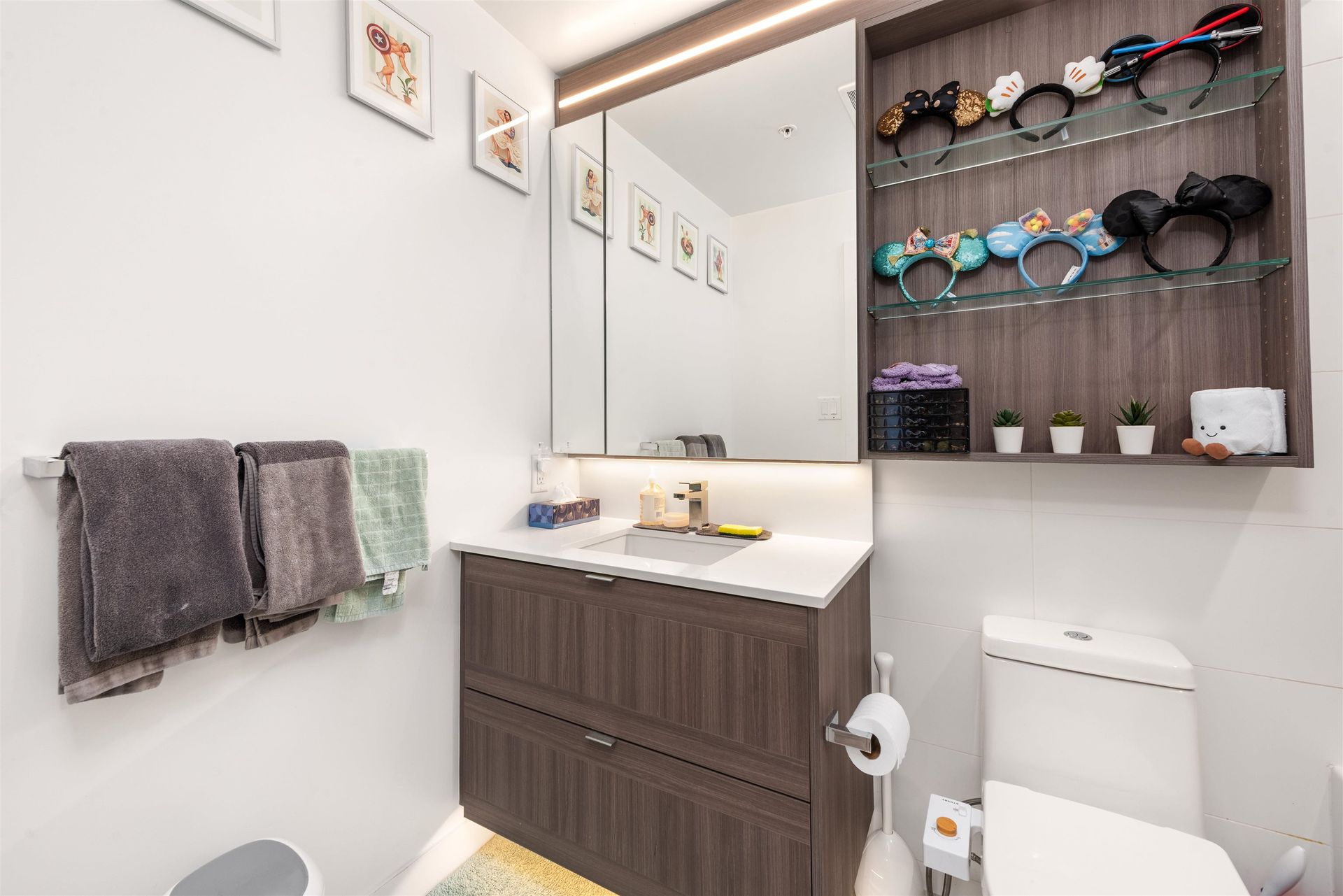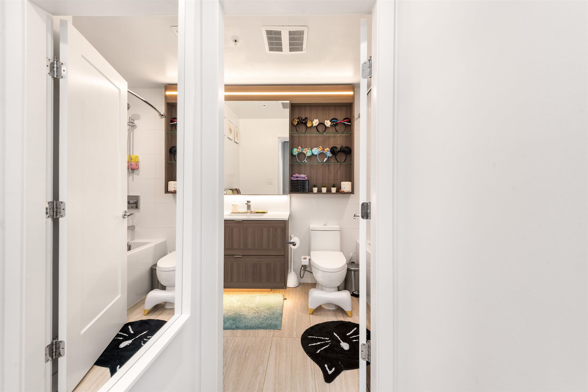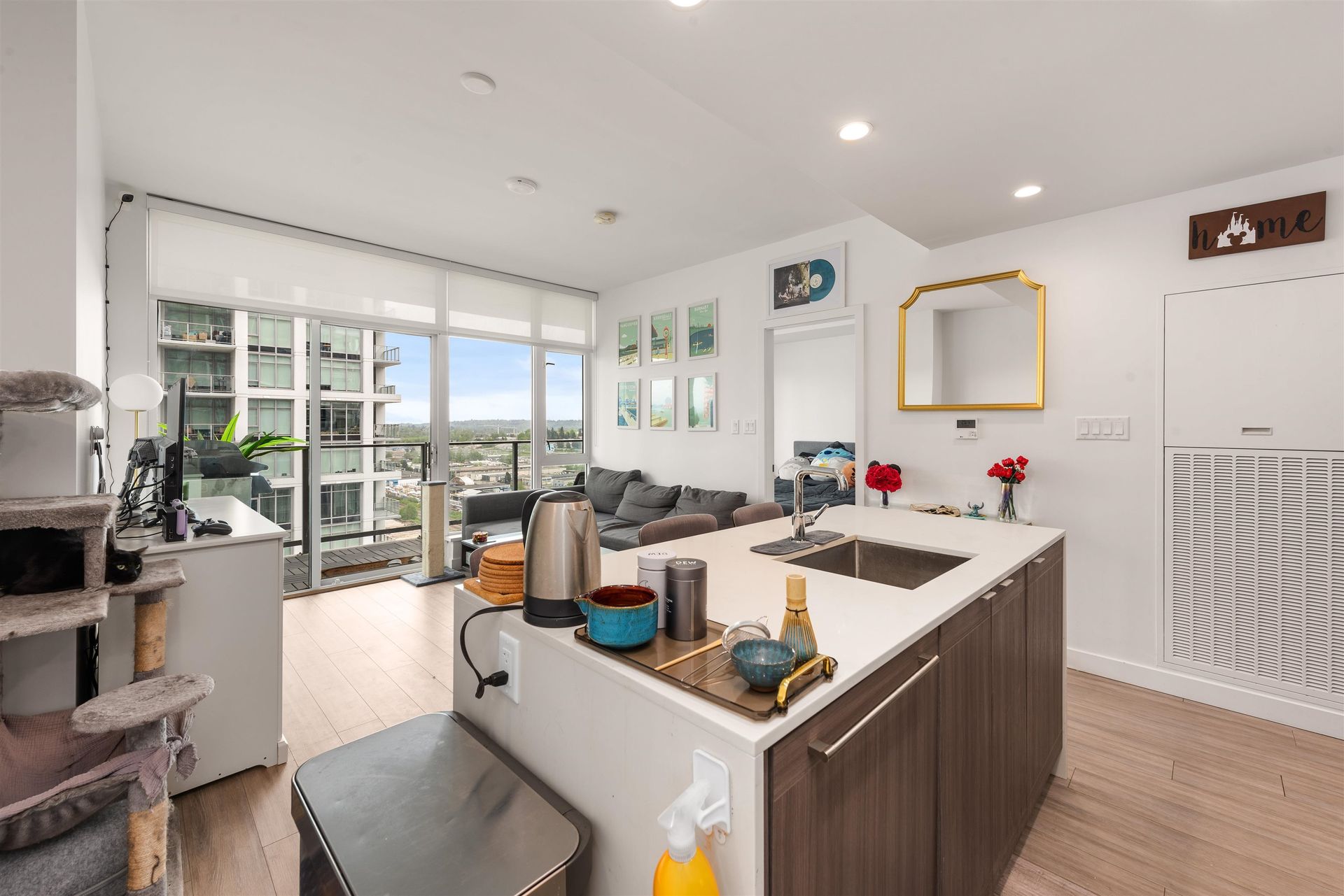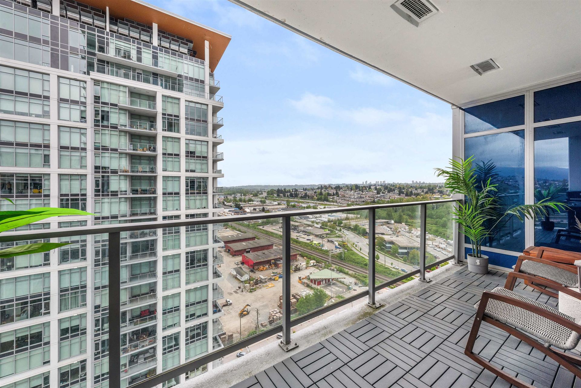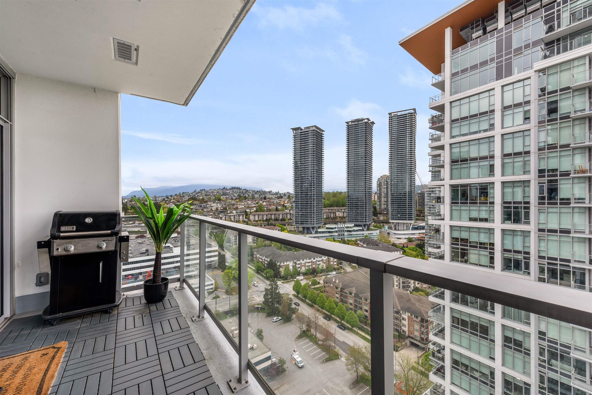 BEST VALUE 1 + DEN in Brentwood! EAST-FACING, OWNER-OCCUPIED since day day 1 home with breathtaking views from the North Shore Mountain to Mt. Baker. Smart and Spacious layout featuring a sizeable Den (Big Enough to be a 2nd bedroom) with sleek sliding glass doors. Kitchen boasts FULL SIZE Bosch appliances package with upscale cabinetry and countertops. Generously sized bedroom including a well-proportioned walk-in closet. Soak in the MORNING SUN with 9' ceilings, plus enjoy air-conditioning for year-round comfort. Stellar amenities including a fitness centre, 24 hours concierge, massive Party room and a rooftop garden. Exciting future with a planned 13-acre park nearby. Unbeatable location with steps to Brentwood Mall and Skytrain. A perfect balance of urban convenience and greenery!!