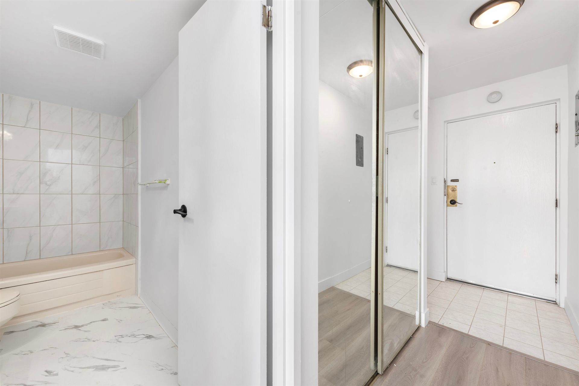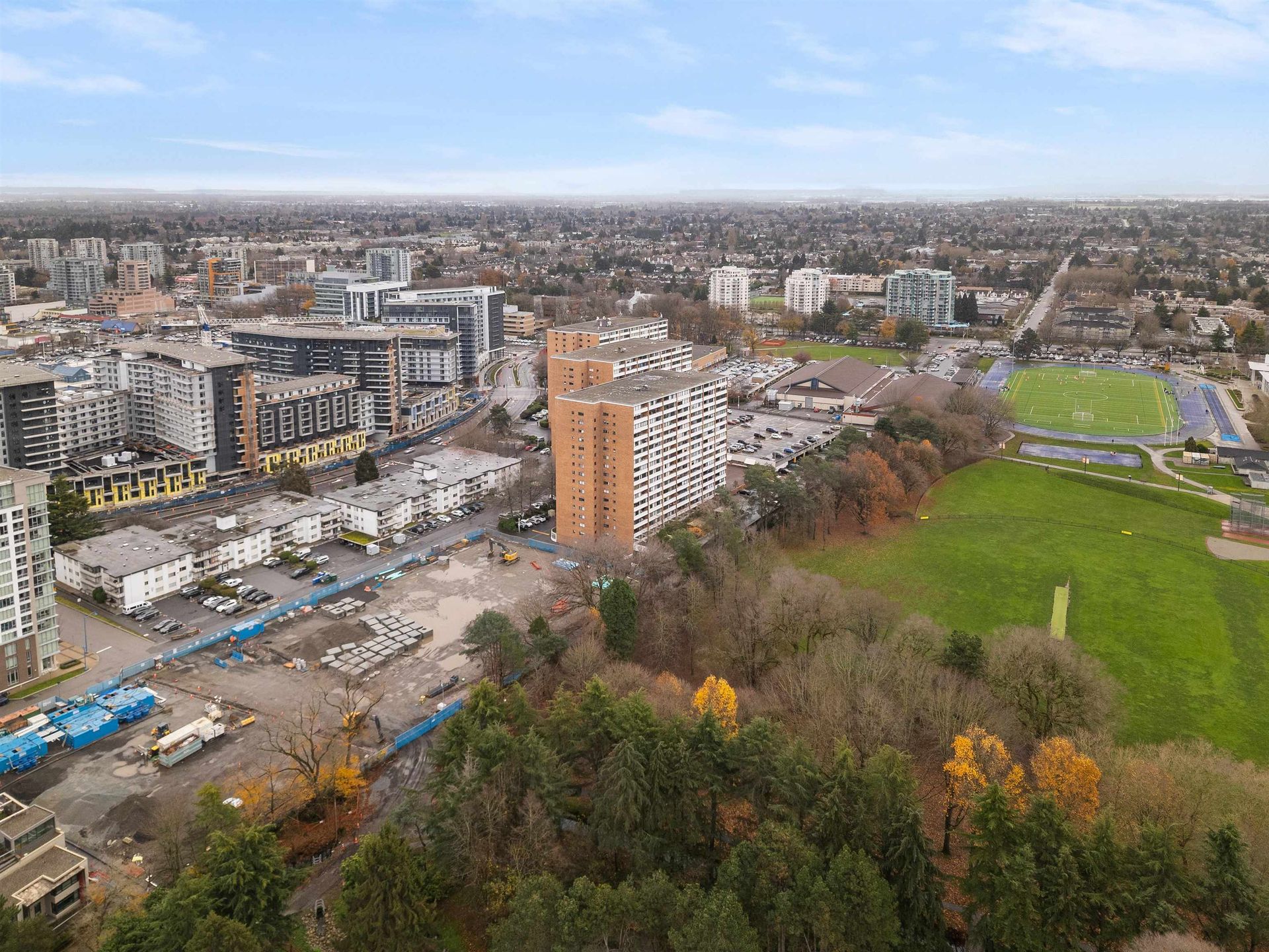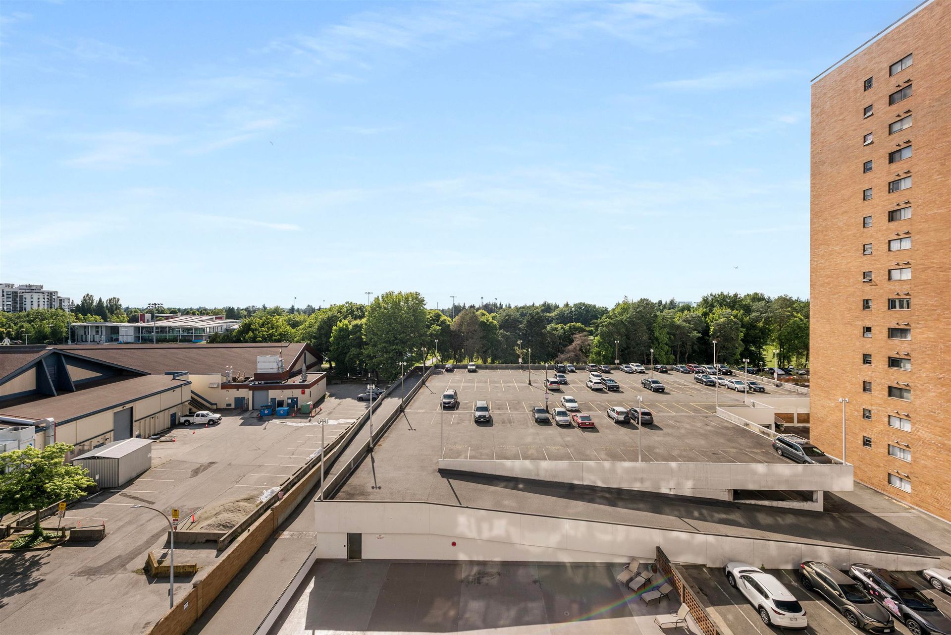 Welcome to Park Towers - Welcome to this beautifully renovated 1-bedroom park-side facing home. Updated in 2024, this bright and spacious unit features elegant hardwood flooring, a refreshed kitchen and bath, and a highly efficient layout with sweeping views of Minoru Park and the outdoor pool — a rare, tranquil and PRIVATE outlook that brings tranquility to your home within the busy city core. Located just steps from Richmond Centre, the Canada Line, Minoru Aquatic Centre, and the Richmond Public Library, this home offers unmatched urban convenience. Perfect home for any first time buyer, downsizers or investors! This TURNKEY property checks all boxes. 1 Parking and 1 Locker Included. Open House July 19 11-1 July 20 1-3pm