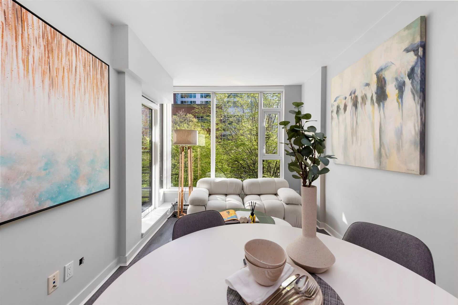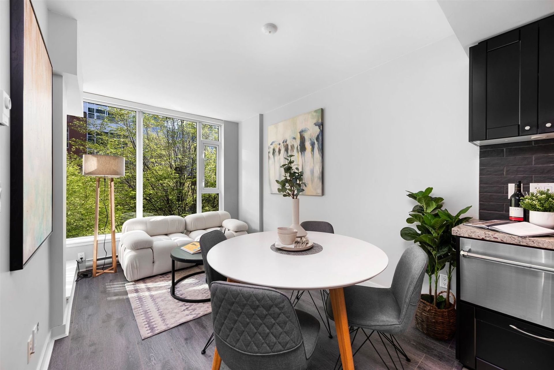 Attention FIRST TIME BUYER OR INVESTORS - Stylish 1 bedroom + den in the H&H Building situated at the heart of Yaletown, perfectly located among the trendiest restaurants and shops. Steps from the seawall, this home is the perfect balance between Urban Living who are also outdoor enthusiasts. Do not get fooled by the square footage, this home features an efficient open floor plan, a seldom seen luxurious 5-piece bathroom, a modern L-Shaped kitchen, and a functional den for your WFH needs or additional storage. Enjoy the views from the beautiful tree-lined streets from your living room and bedroom. 1 Parking is included. Don't miss your opportunity at owning a piece of Yale Town with a proactive strata council. Open House April 20 1-3pm and April 21 2-4pm.