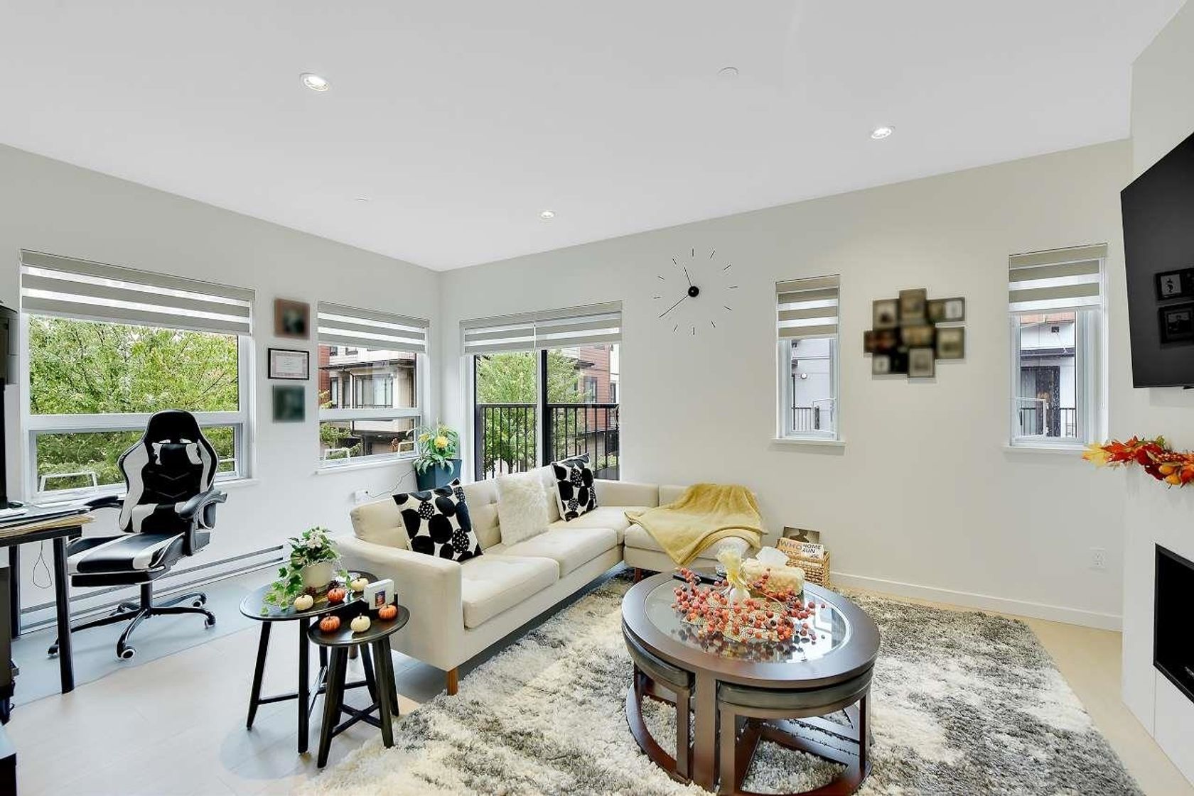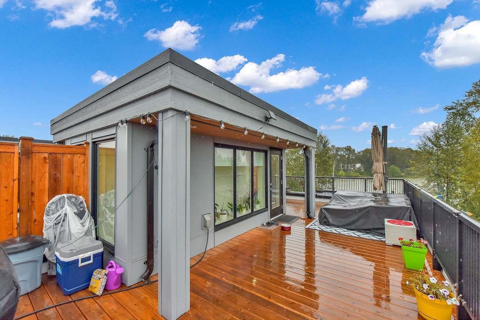 Waterfront living! End Unit, only 1 year old built by Pennyfarthing, bright & spacious 3 bdrms, 3 bathroom home comes with over 400sf of outdoor space, rooftop terrace + ground level patio. Scenic views. This home comes with quartz countertops, gas range, custom cabinetry, stylish gas fireplace. Comes with custom blinds, rec/storage room, window screens, newer dinrm light fixture, stained rooftop floor + BBQ hook up connected. Ready to move in. Enjoy the beautiful sunsets! Pleasure to show. Shows well. Located closet to parks, schools, waterfront trails & New Westminster Quay.