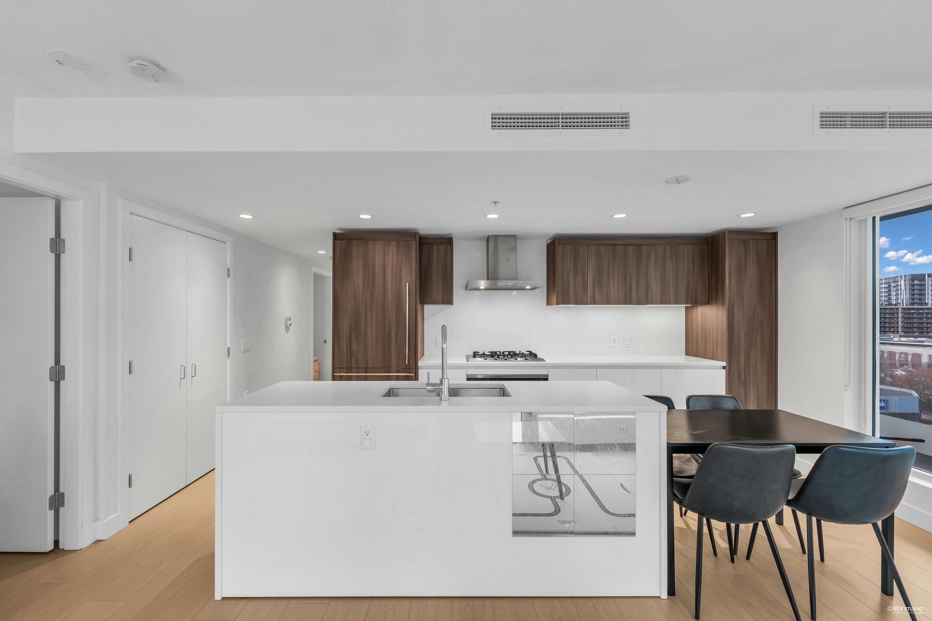 Experience luxurious living at Paramount Tower in Richmond! This contemporary 2-bedroom, 2-bathroom plus den residence offers a tranquil view. The open-concept design features expansive floor-to-ceiling windows, a modern kitchen equipped with stainless steel appliances, and a generous private balcony. The primary bedroom includes a spa-inspired ensuite, complemented by in-suite laundry and air conditioning for added convenience. Enjoy top-tier amenities such as a fitness center, rooftop garden, lounge, and concierge services. Conveniently located just steps from Richmond Centre, the SkyTrain, and a variety of restaurants, this home perfectly combines style and convenience. Schedule your private viewing today!