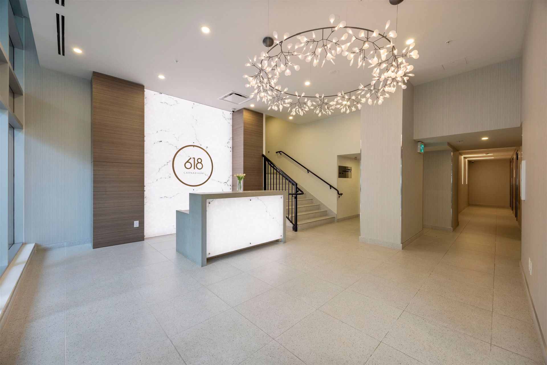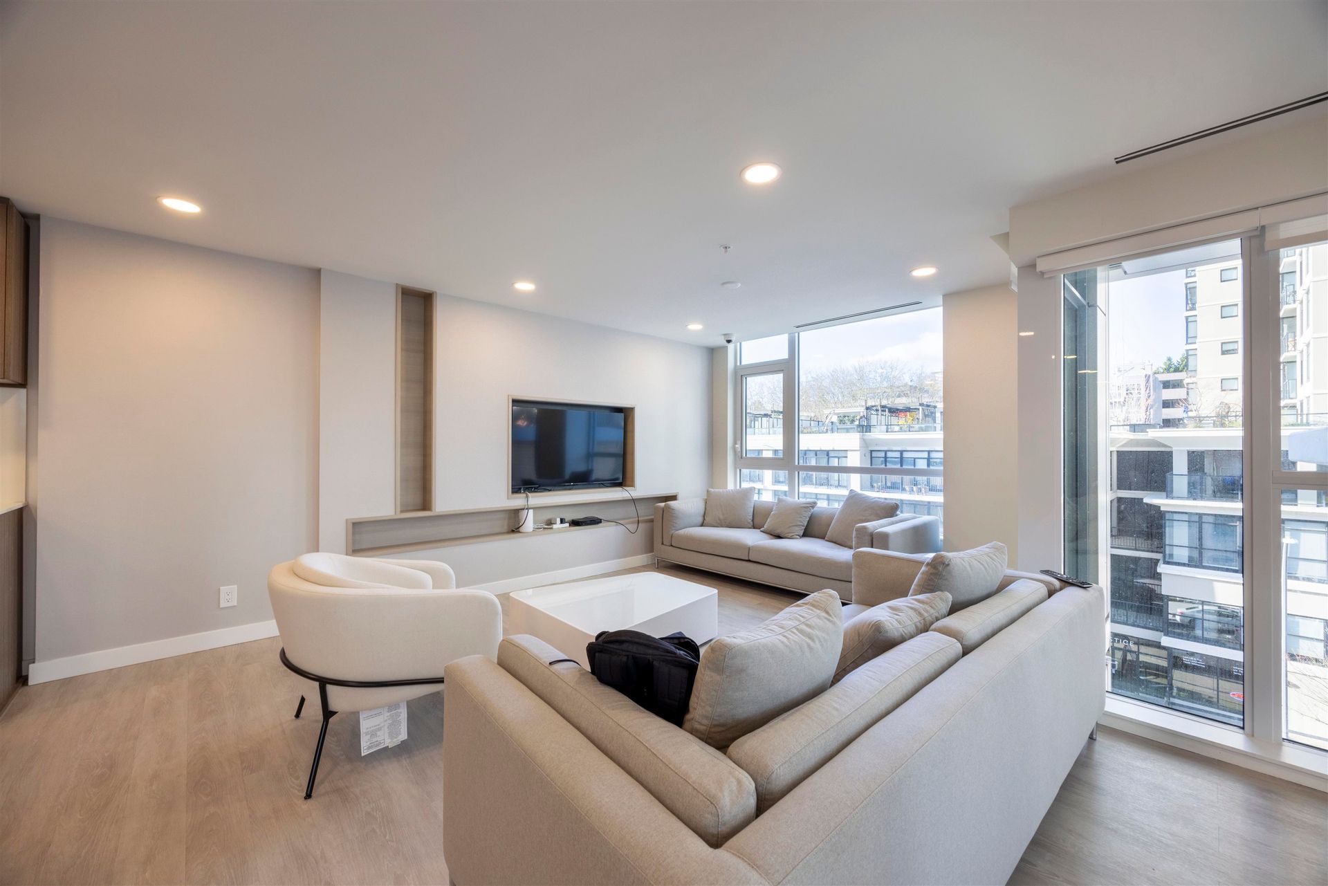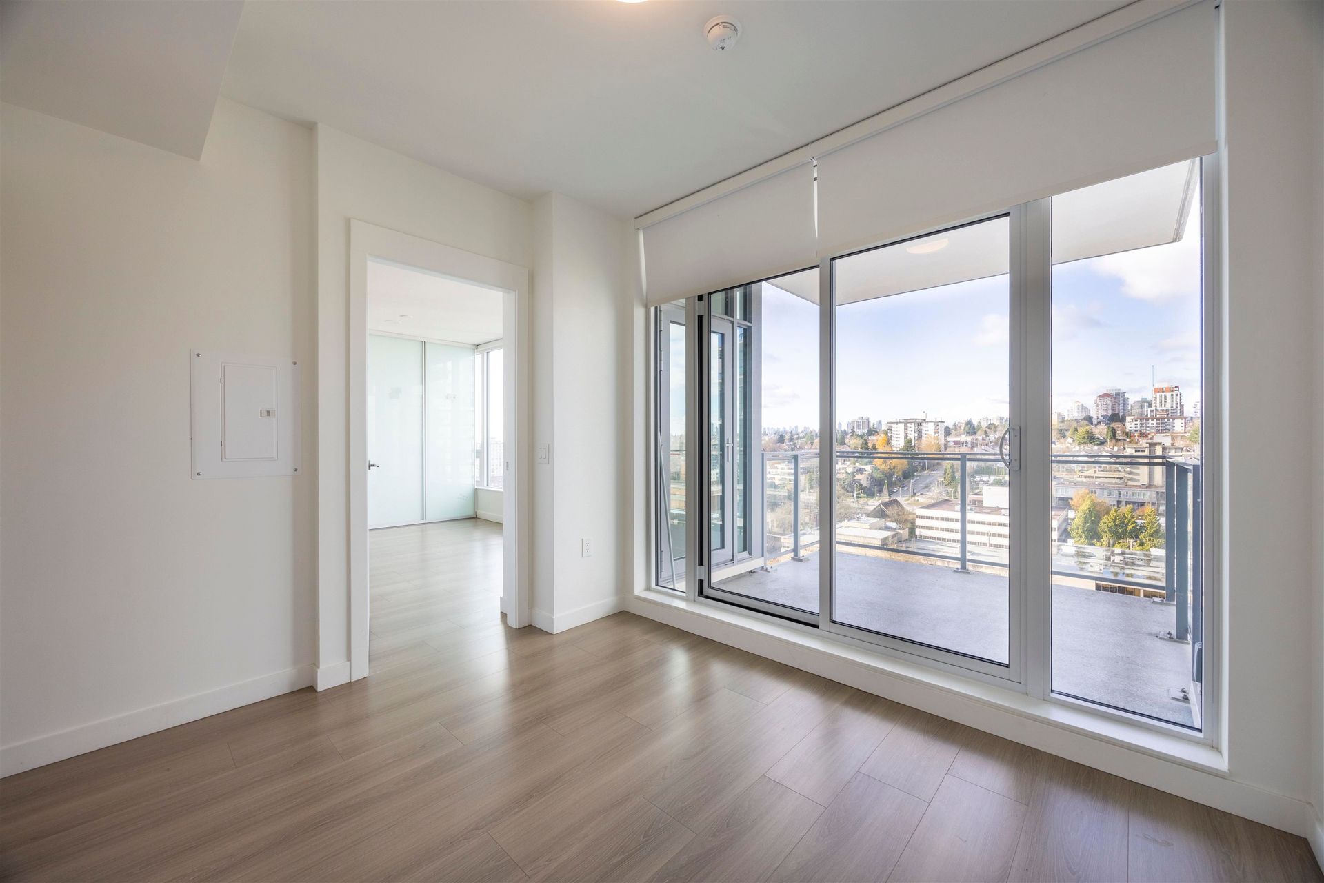Beautiful Junior 2 bedroom/ 1 bathroom unit, open and functional layout offers a U-Shape Kitchen overlook your the living and dining area. This spacious kitchen is integrated with Bosch stainless appliances (gas cook top, oven, fridge and dishwasher), Panasonic microwave, polished quartz counter-tops, high-end cabinetry, Kohler double under-mount sink. Bathroom is featured with Koehler fixtures, porcelain tiles, contemporary cabinetry and polished Caesarstone countertop. Located at the heart of Downtown New Westminster: minutes to skytrain station, restaurant, groceries, Cineplex.