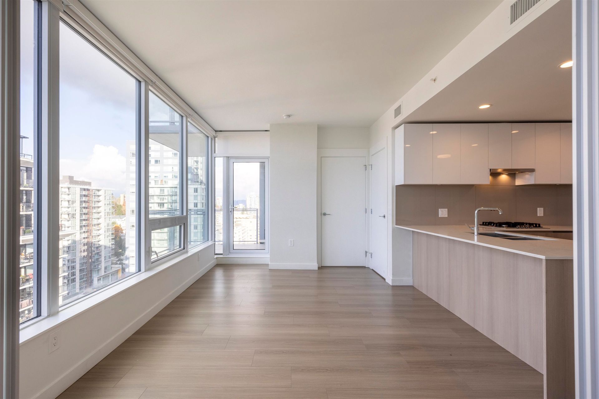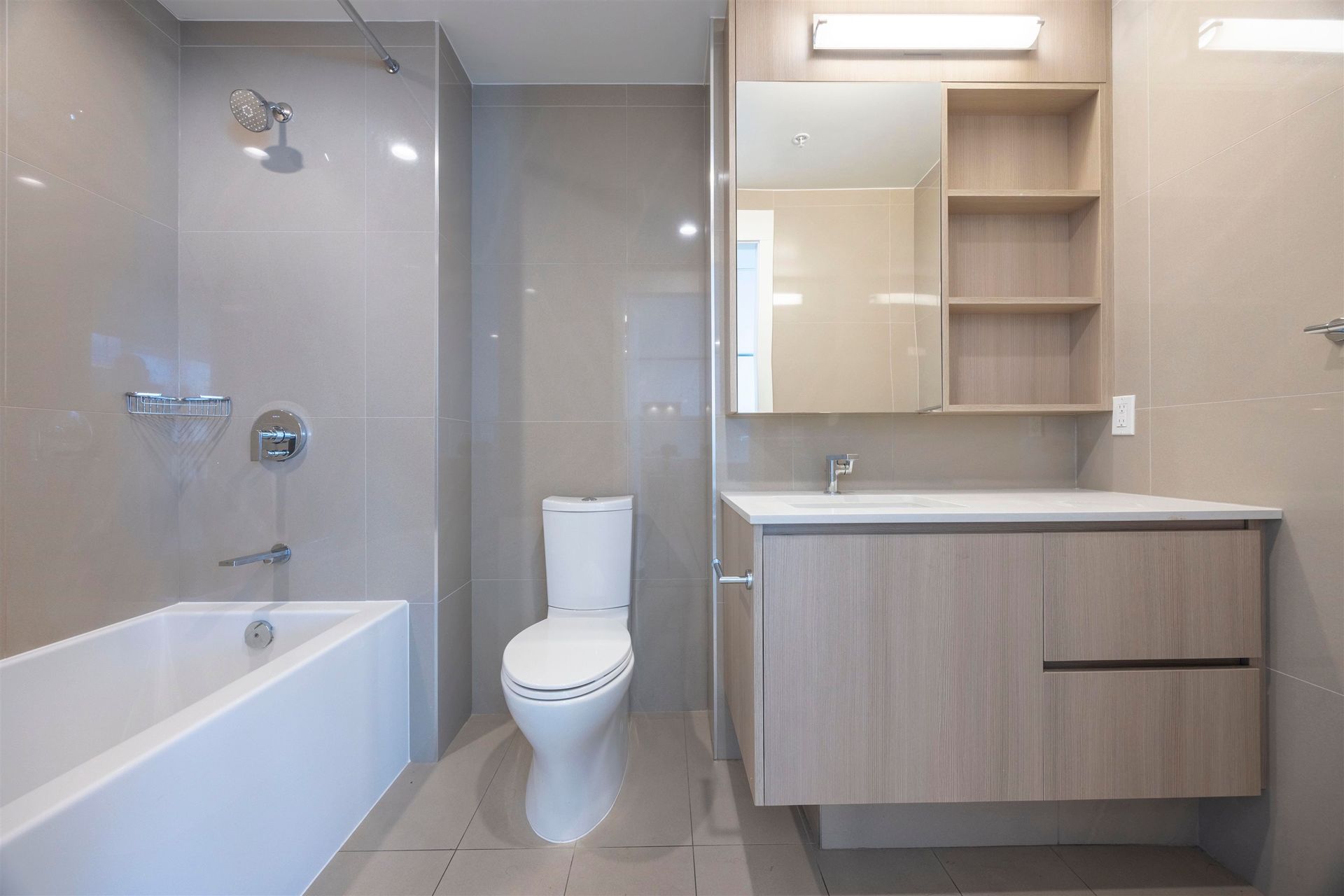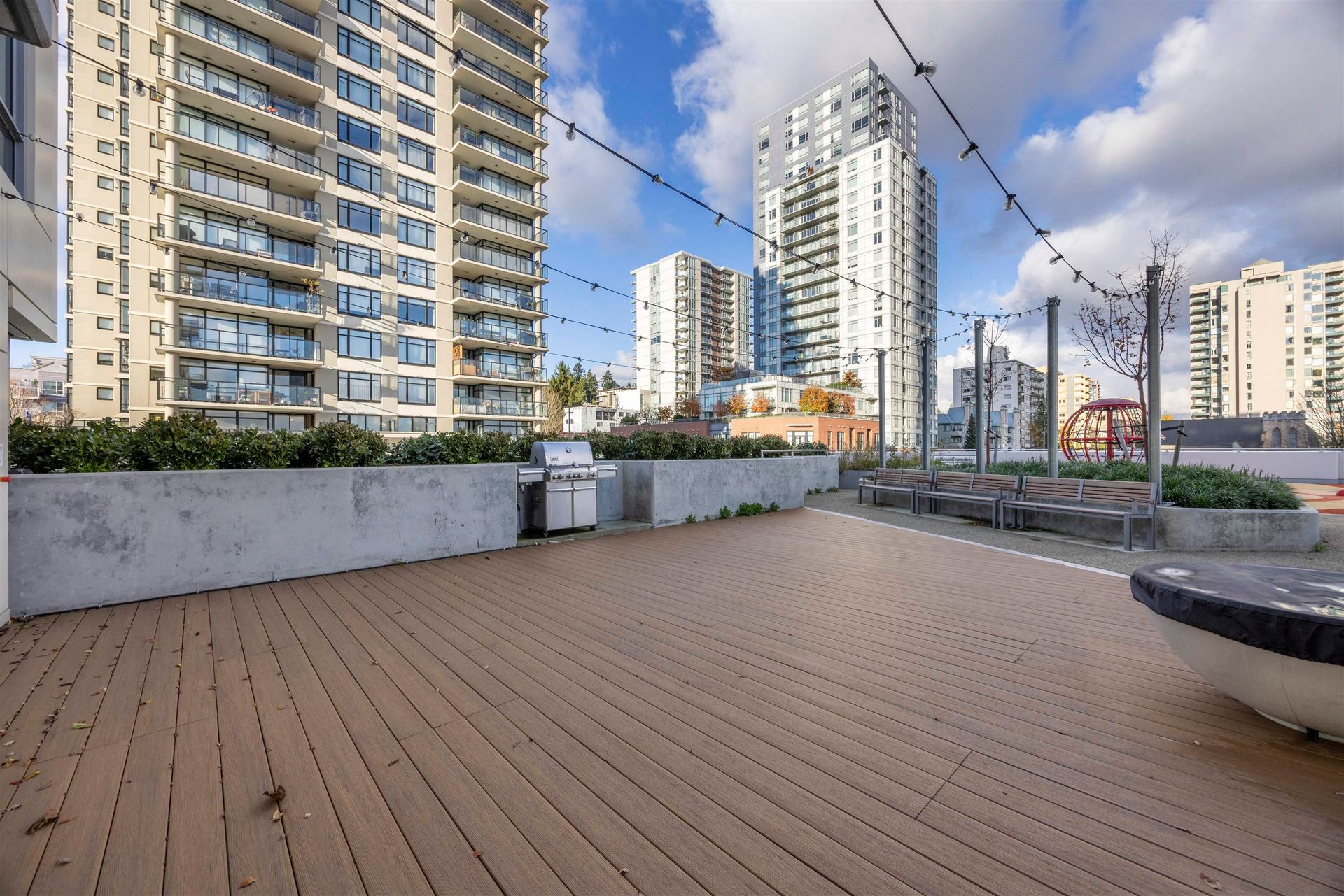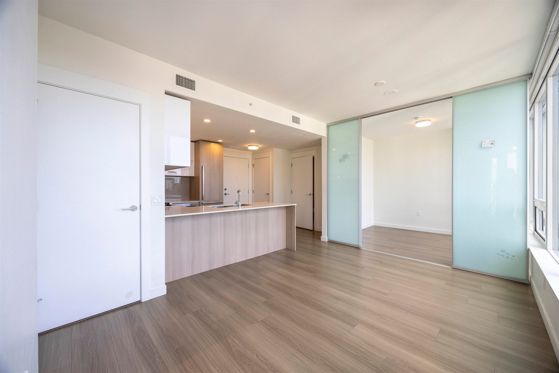 Beautiful Junior 2 bedroom/ 1 bathroom unit, open and functional layout offers a U-Shape Kitchen overlook your the living and dining area. This spacious kitchen is integrated with Bosch stainless appliances (gas cook top, oven, fridge and dishwasher), Panasonic microwave, polished quartz counter-tops, high-end cabinetry, Kohler double under-mount sink. Bathroom is featured with Koehler fixtures, porcelain tiles, contemporary cabinetry and polished Caesarstone countertop. Located at the heart of Downtown New Westminster: minutes to skytrain station, restaurant, groceries, Cineplex.