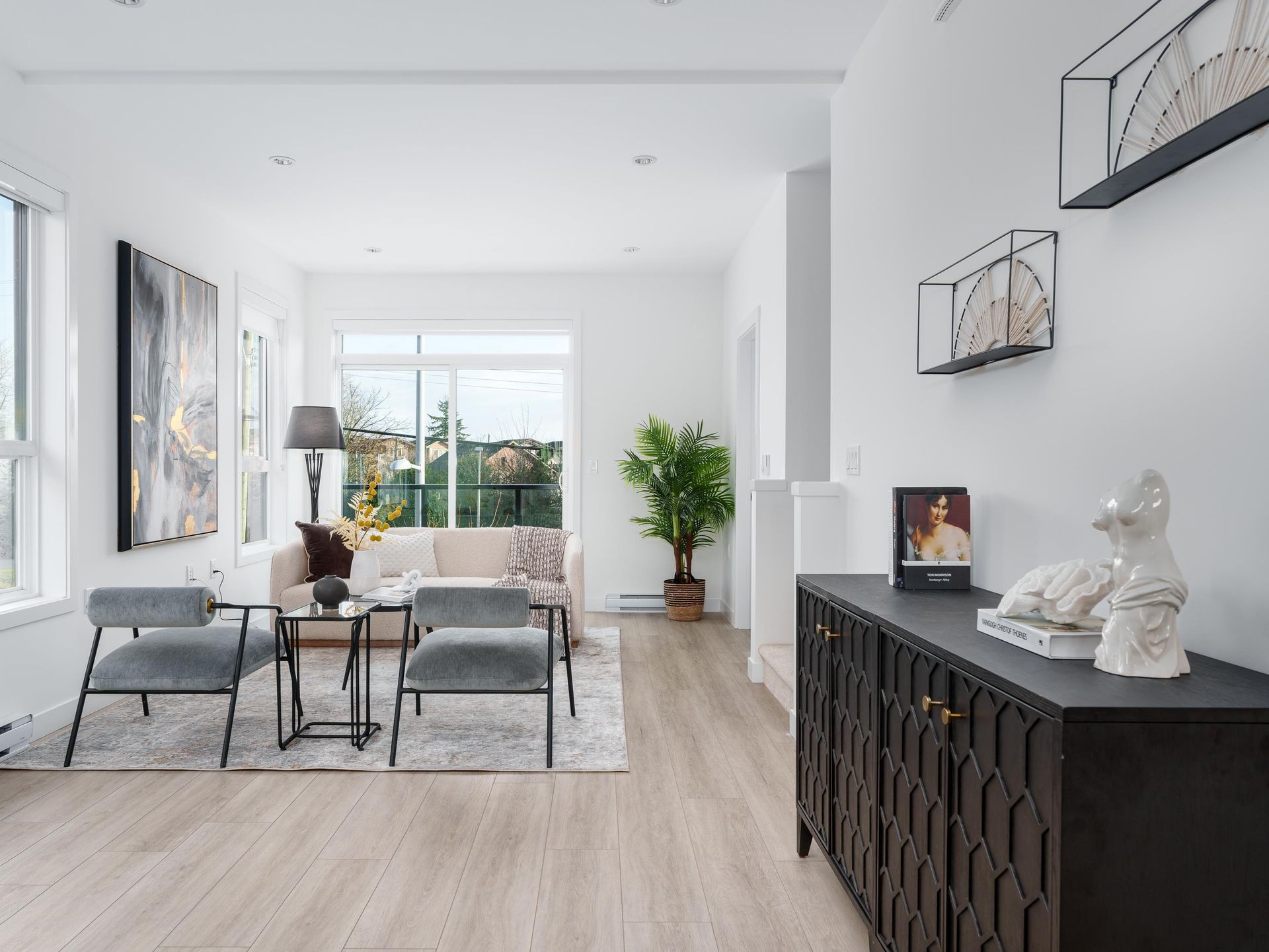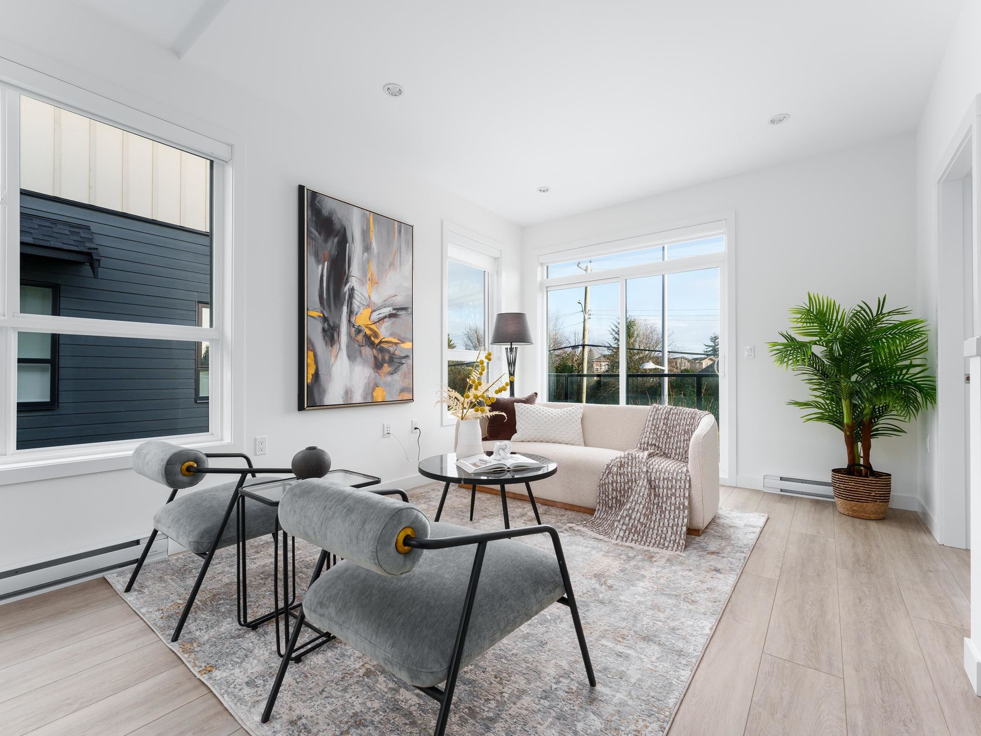 5% deposit! Take advantage of the GST rebate offered to First Time Home Buyers. Spacious 9' ceiling, with bright over sized windows. Luxurious quartz countertop, upgraded Fisher Paykel appliances, sleek GROHE fixtures and kitchen and bathrooms. 'New for phase 3' POWER SAVING HEAT PUMP with AC Delivering comfort throughout the entire home. Generous size fenced patio with balcony, perfect for those summer BBQ. Massive new park across from Parc Thompson complex Easy walk to the river. Rapid commute to lower mainland/via frequent 410 bus and 22nd SkyTrain Minutes to Walmart. power center and other commercial services. Call L/S for promotional discount and down payment. PRICE QUALIFY FOR NEW TRANSFER TAX EXEMPTION. Unfinished 442sf is garage space.