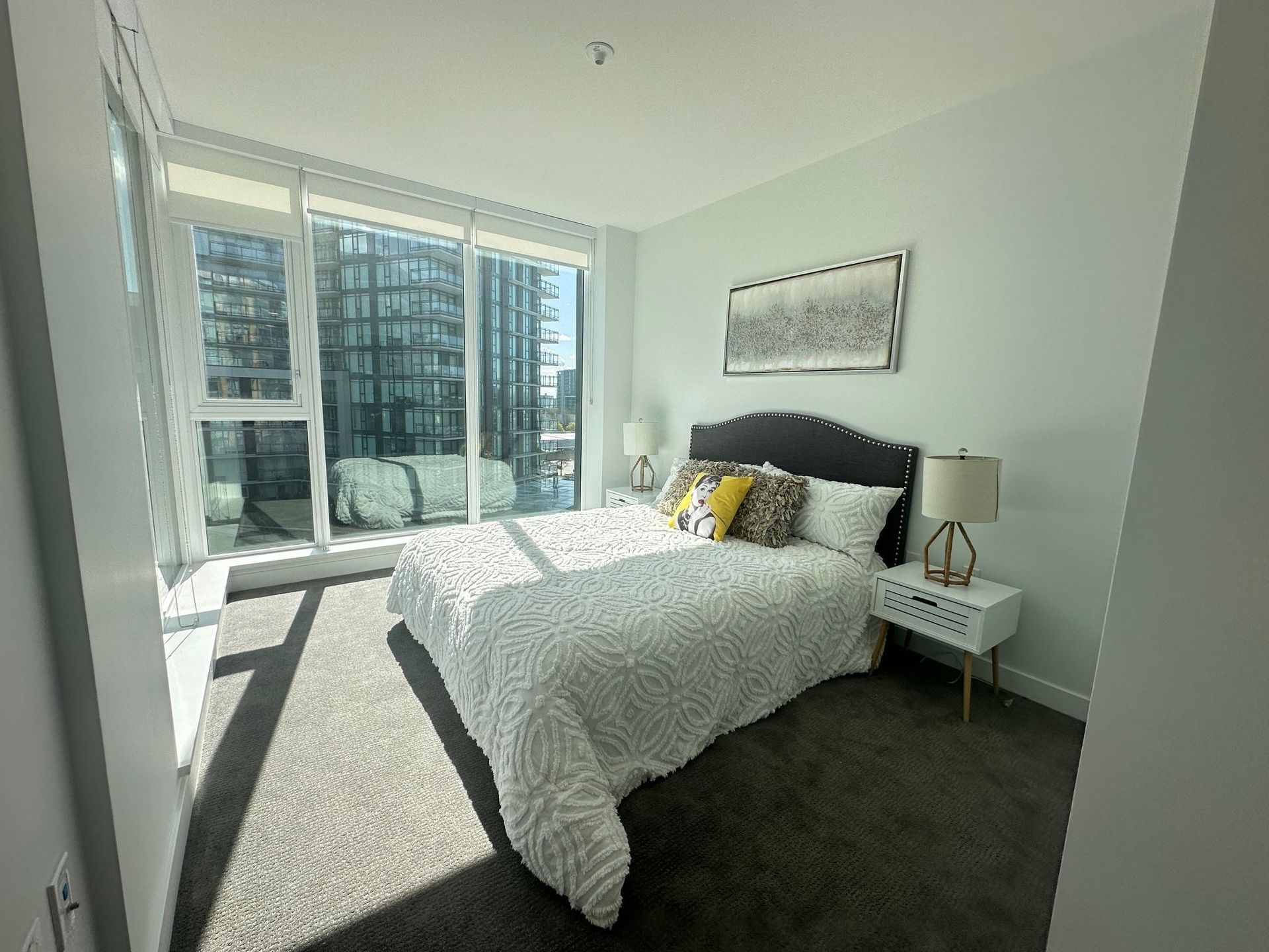 Pay 15% deposit , MOVE IN NOW, COMPLETE IN 2.5 Year! DOWN TO OWN Program! Viewstar, the largest water front community in Richmond. This perfect 2 bedrooms 2 bathrooms floor plan 940SFT with balcony , 1 parking, 1 Locker. Features high ceiling, open floor plan, extensive used hardwood floor thru out, high end cabinetry with Miele appliances, air conditioning, CLUB HOUSE, INDOOR SWIMMING POOL, GYM, Entertainment Room with ROOF GARDEN. Steps away to SKYTRAIN STATION. Close to SCHOOL, COSTCO, YAOHAN CENTRE, T&T, LANDSDOWN & RICHMOND SHOPPING MALL, RESTAURANTS, SEA WALK, COMMUNITY CENTRE, VERY CENTRAL LOCATION. MUST SEE!