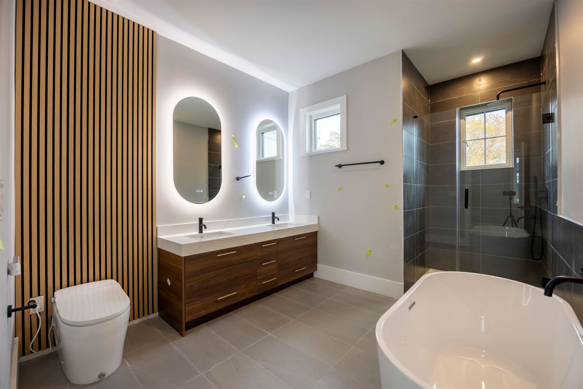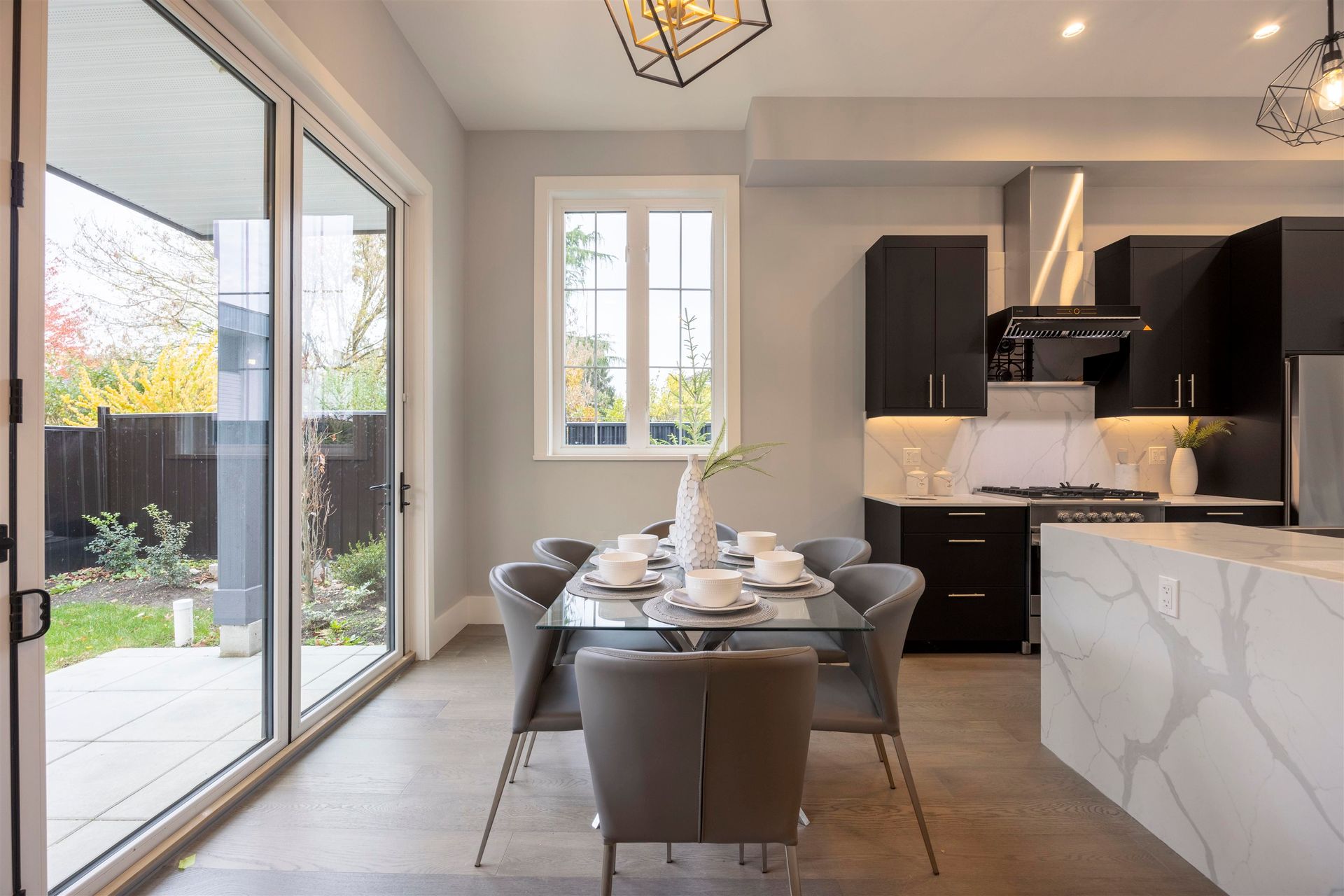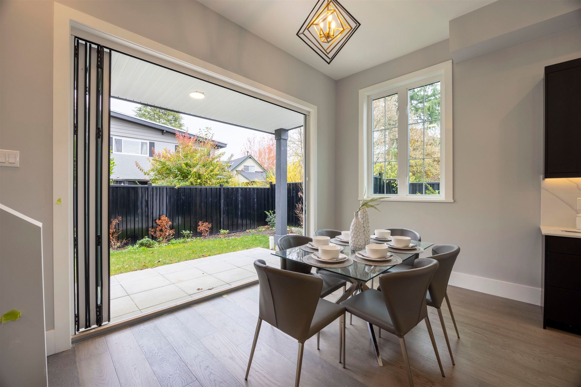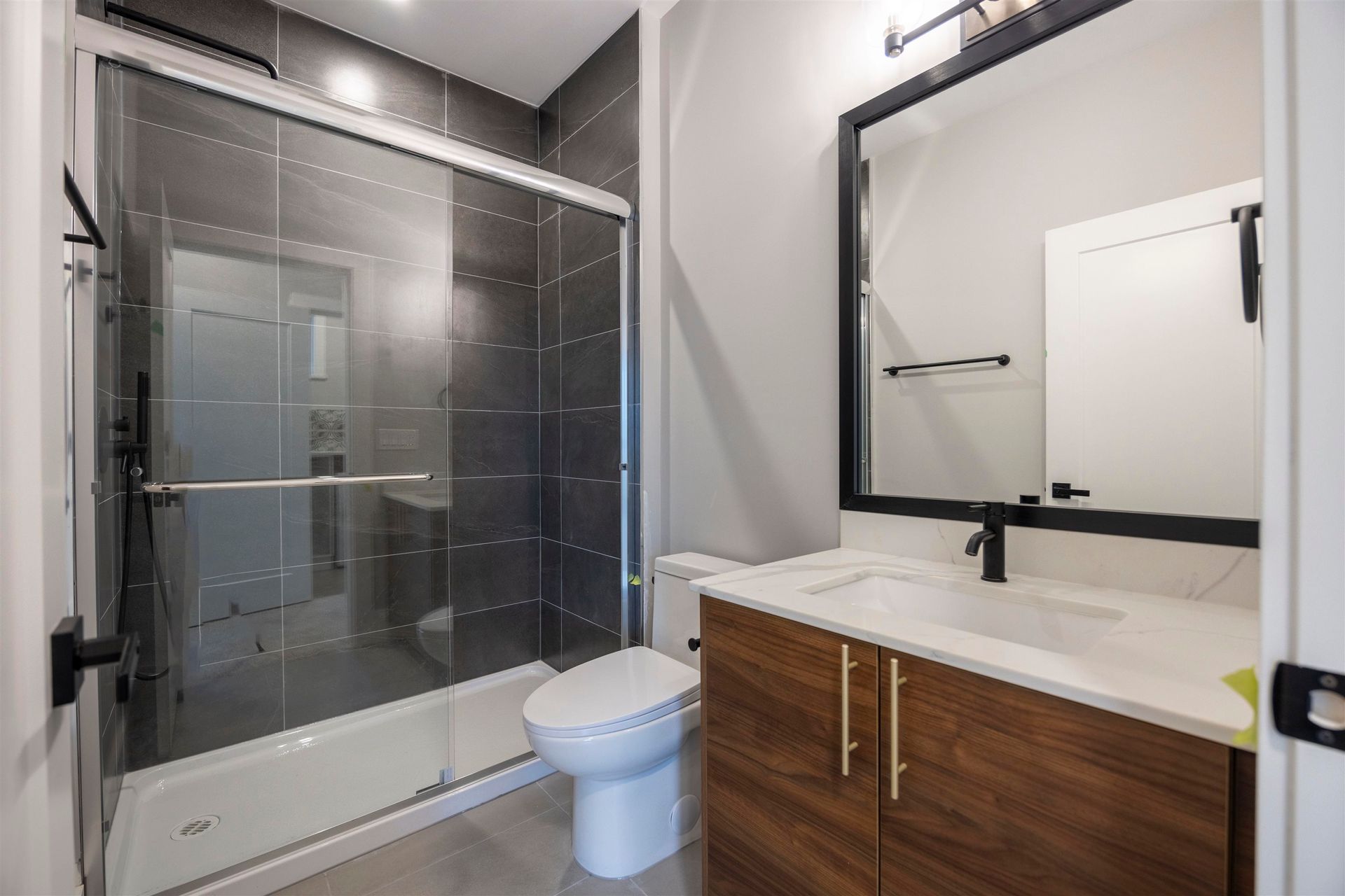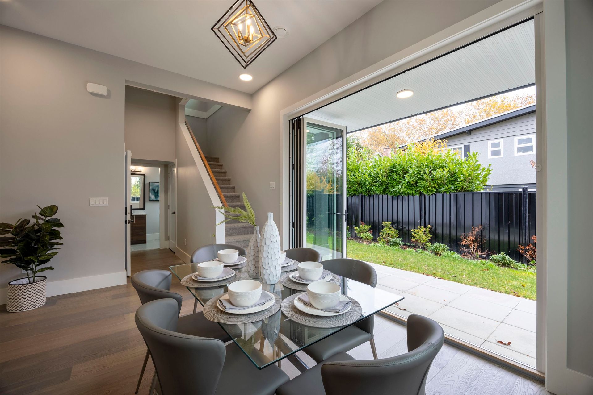 Experience luxury in this meticulously crafted duplex-style home, showcasing thoughtful finishes throughout. With 11' ceilings on the main floor and 10' on the second, this bright and spacious living area features floor-to-ceiling folding balcony doors. The deluxe kitchen includes a waterfall marble island, Fisher & Paykel appliances, Kohler faucet, custom wood cabinets, and a high-efficiency Fotile hood fan. The ground-floor bedroom has rough-in plumbing ready for added flexibility. The primary suite boasts a large walk-in closet and hotel-style bathroom with freestanding tub, shower, and double vanity. This 3-bedroom, 2.5-bathroom home also offers A/C, and smart home security. Open House Aug 17, 2-4PM
