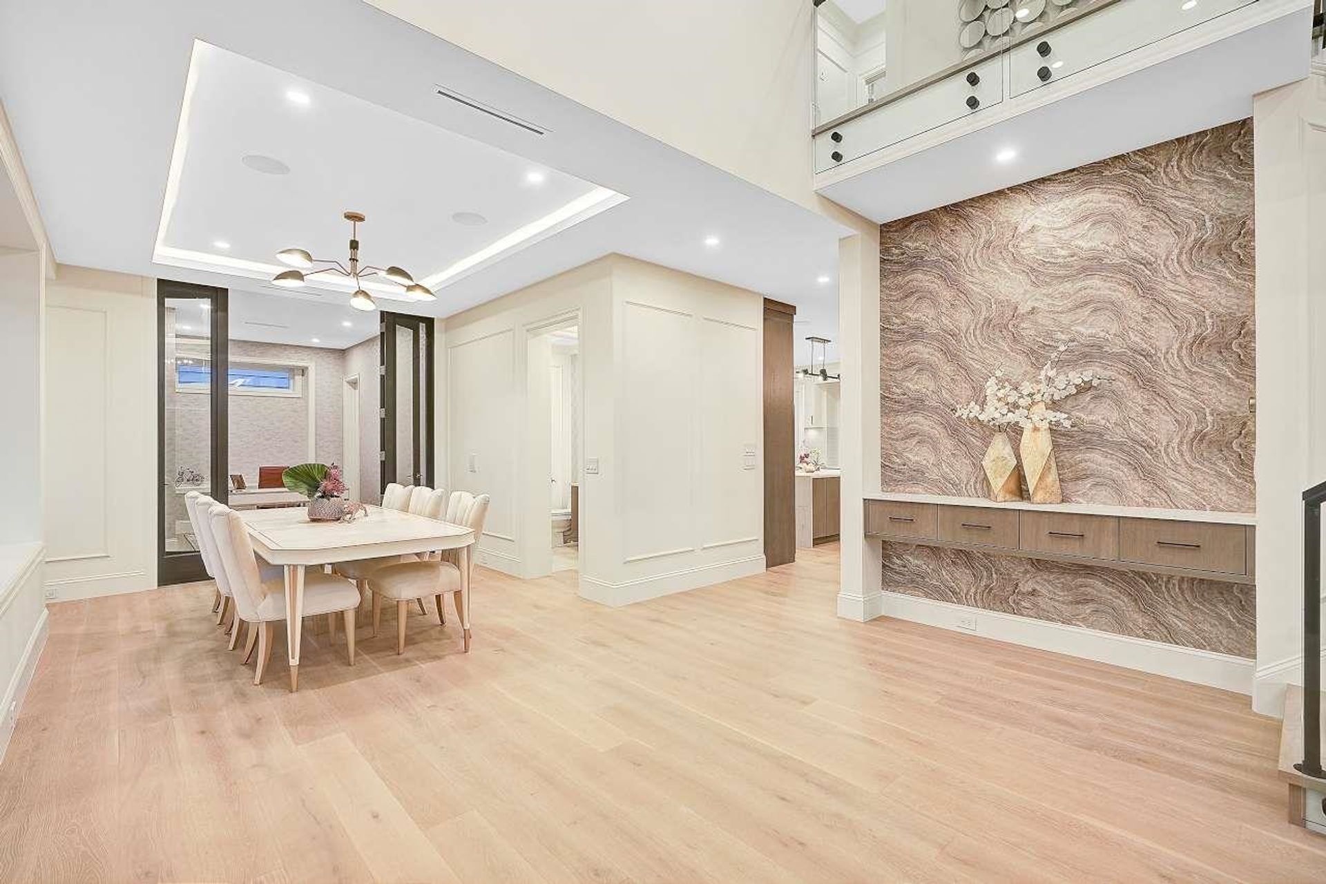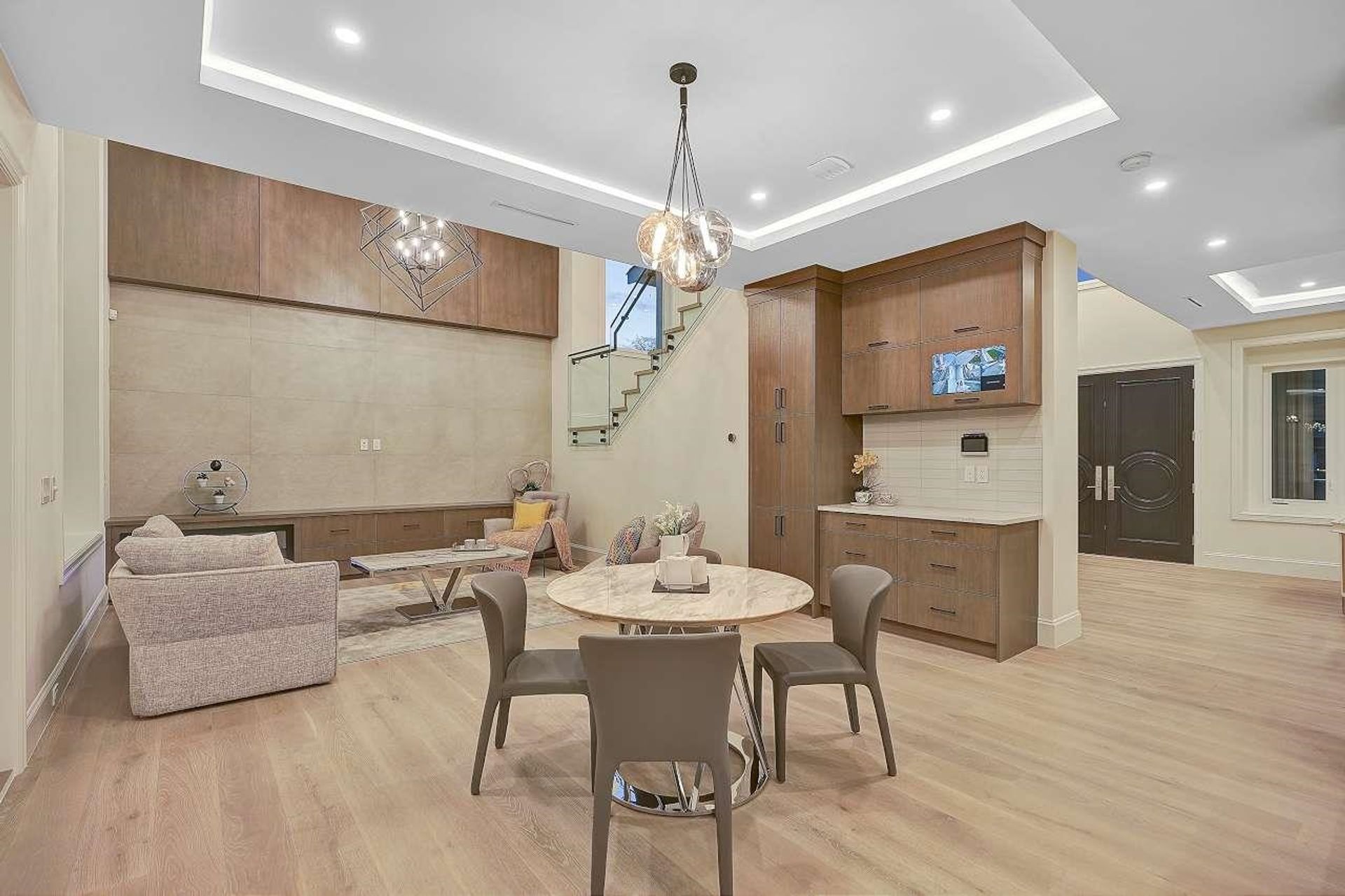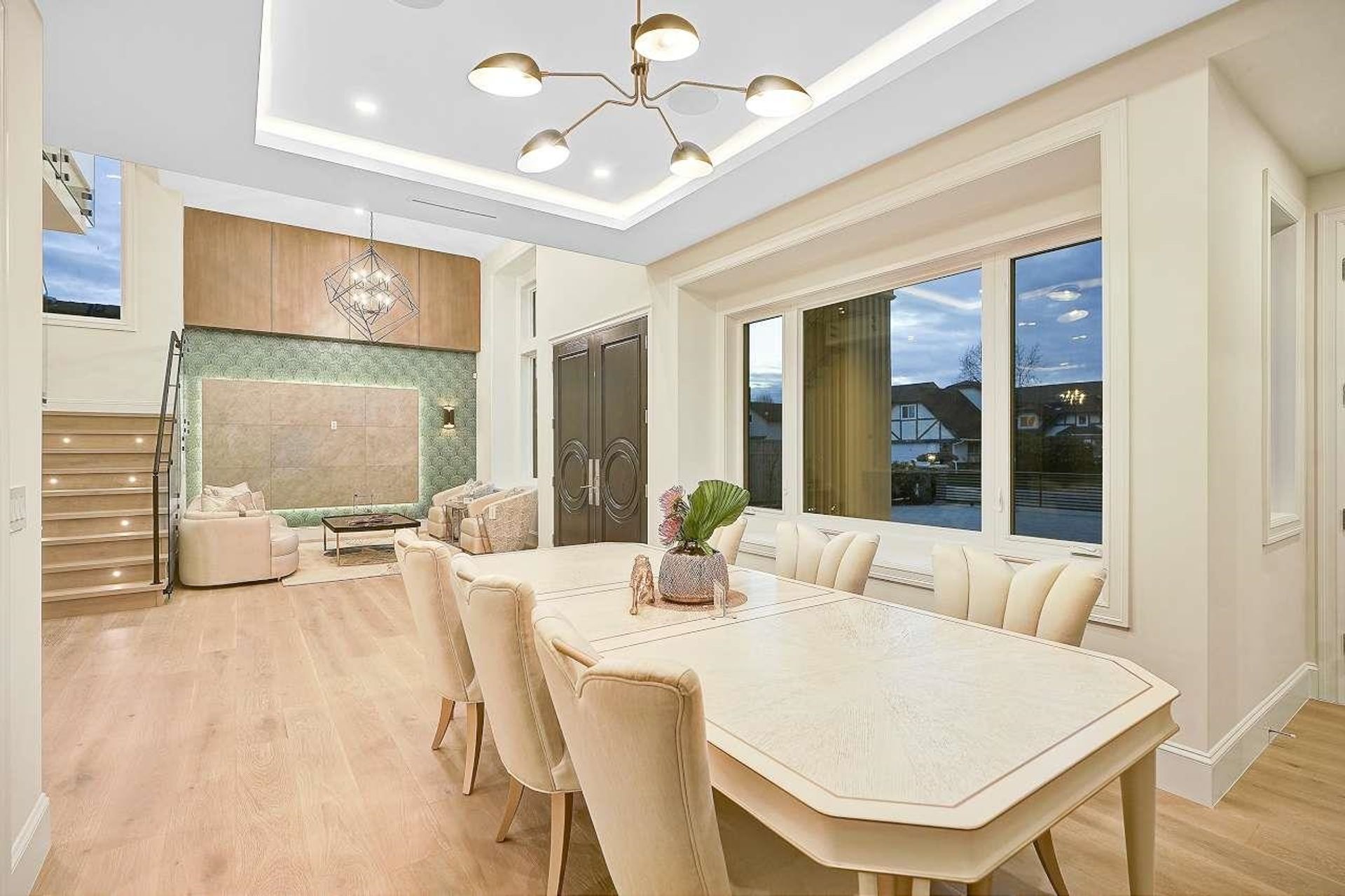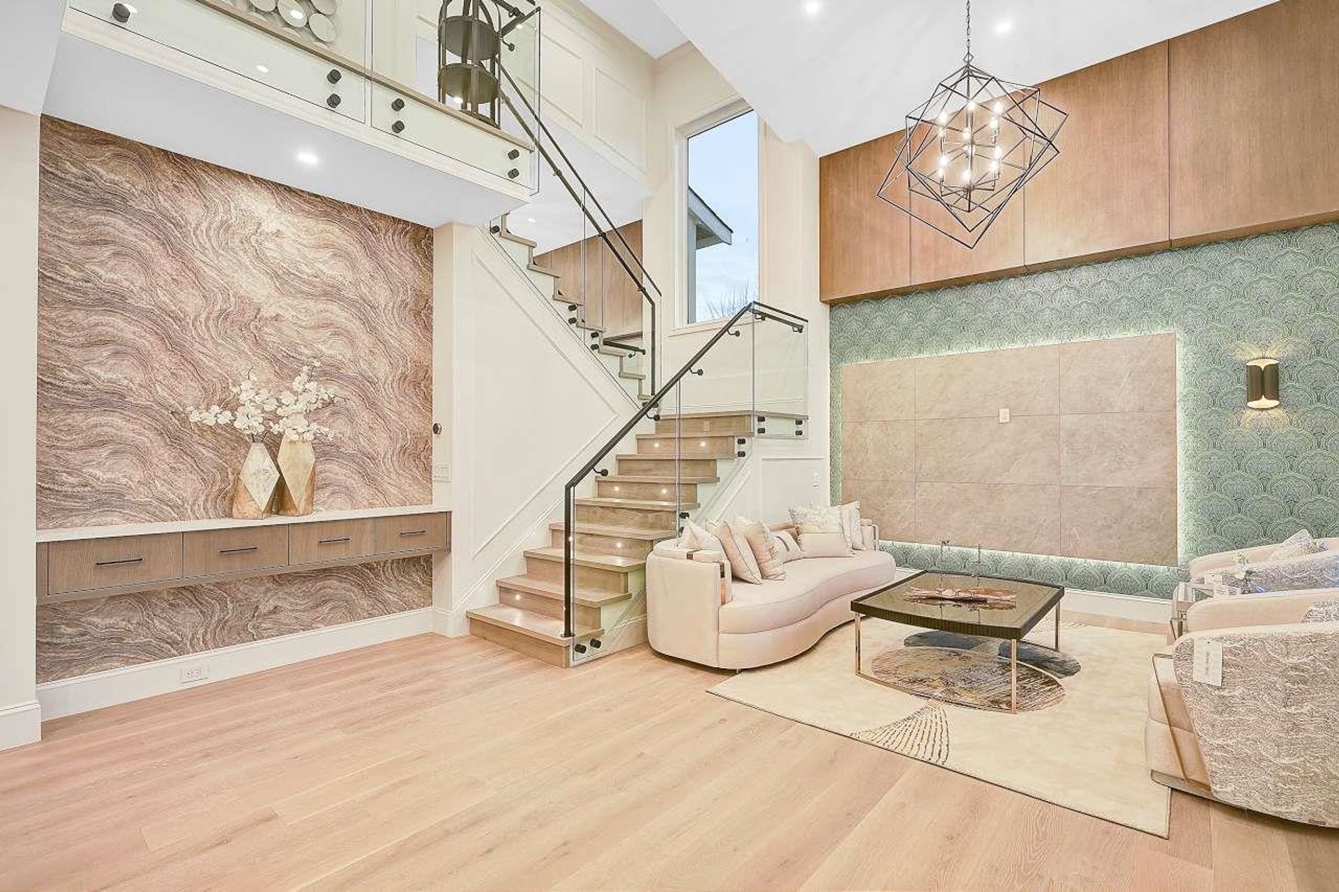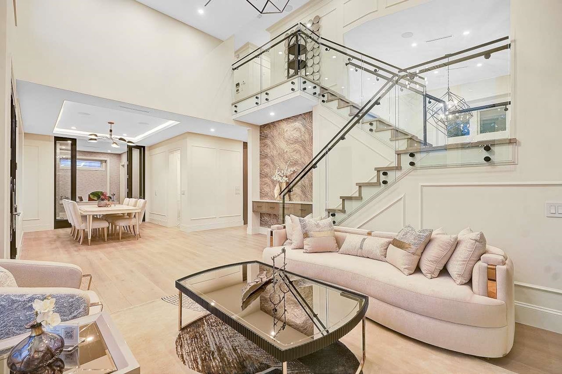 Custom-built home sits on 7019 sf lot with 3,502 SQFT living space in central WOODWARDS NEIGHBORHOOD. This modern style home boosts an open concept,One Bedroom Legal Suite on the main floor, full of exquisite details inside and out. Great open floor plan including 5bdrms + 6 bathrms +3 kitchens+ 2 laundries+3 car garage. built-in speaker system throughout, high end wallpaper, high ceilings in living and family room. One bedroom nanny suite or in-law suite provides independent living space. Spice Kitchen, and Main Kitchen with high-end stainless-steel appliances. Sound surrounding system, A/C, HRV, radiant heat, sprinkler system, etc . .... Walking distance to Blundell center . Close schools, shopping & public transits. School catchment: London Secondary Open House Sun Apr 13