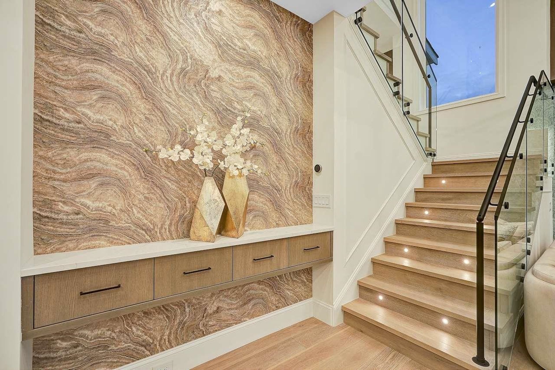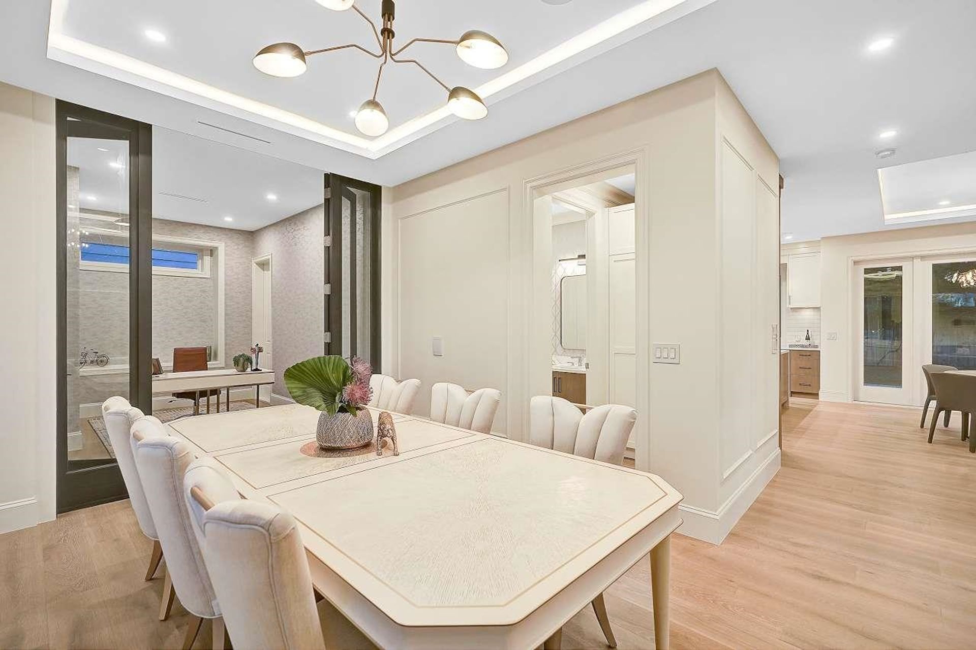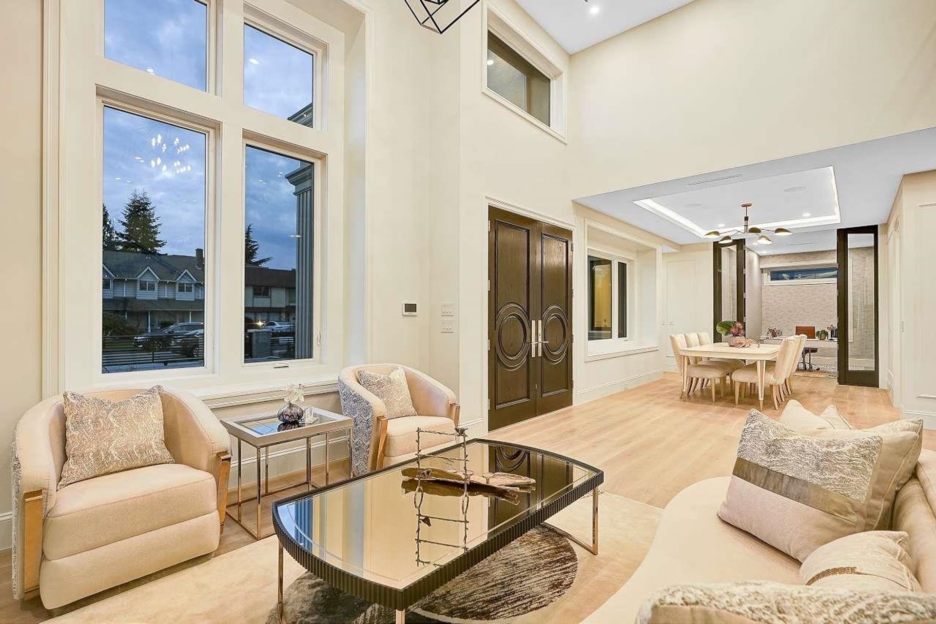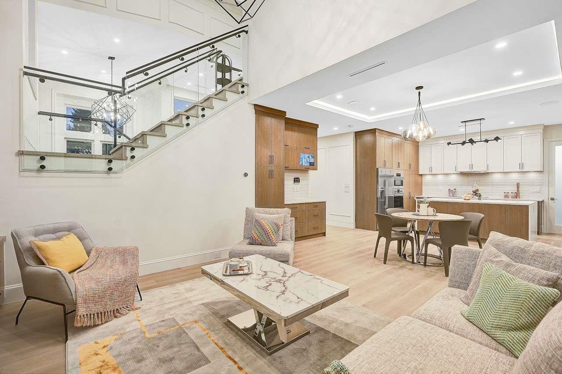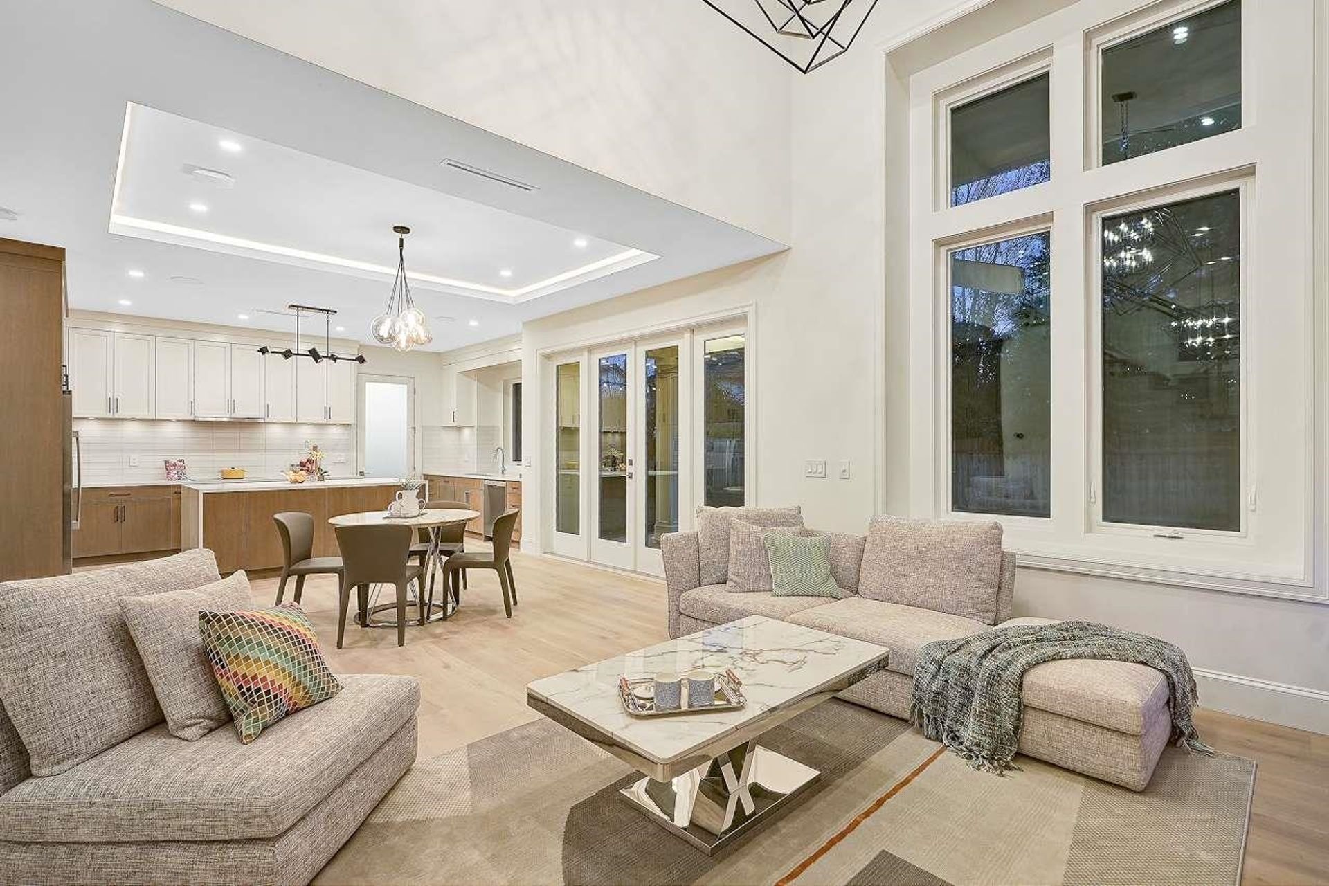 Custom-built home sits on 7019 sf lot with 3,502 SQFT living space in central WOODWARDS NEIGHBORHOOD. This modern style home boosts an open concept,One Bedroom Legal Suite on the main floor, full of exquisite details inside and out. Great open floor plan including 5bdrms + 6 bathrms +3 kitchens+ 2 laundries+3 car garage. built-in speaker system throughout, high end wallpaper, high ceilings in living and family room. One bedroom nanny suite or in-law suite provides independent living space. Spice Kitchen, and Main Kitchen with high-end stainless-steel appliances. Sound surrounding system, A/C, HRV, radiant heat, sprinkler system, etc . .... Walking distance to Blundell center . Close schools, shopping & public transits. School catchment: London Secondary Open House Sun Apr 13