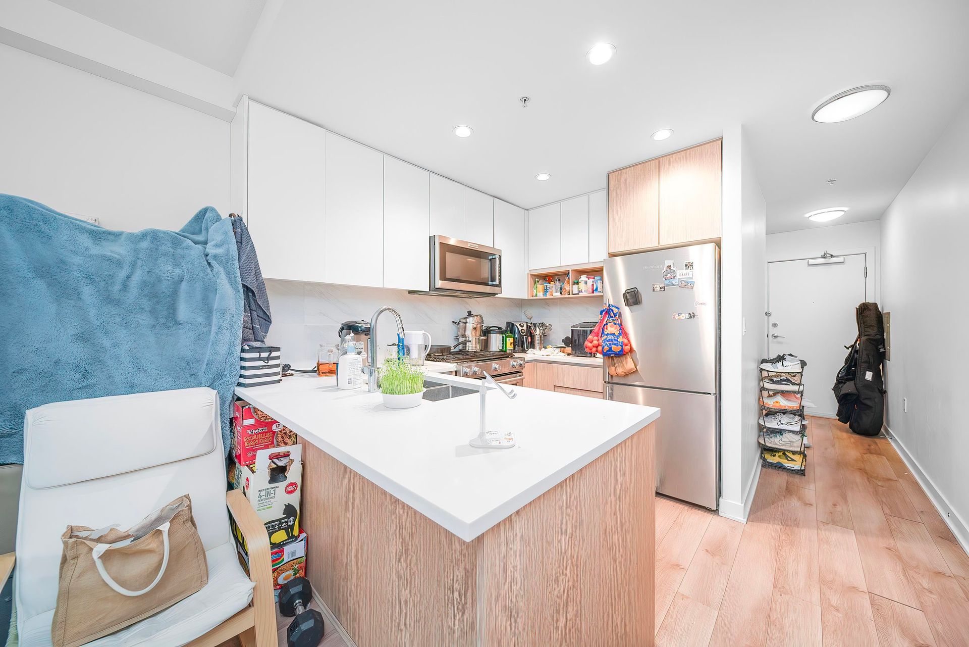 One bedroom plus den at Terraces at the Peak in SFU University. This spacious one bedroom + den home is efficiently designed and boasts private greenbelt exposure. East facing, natural light will fill this open floor plan. Enjoy the well appointed kitchen with stainless steel appliances, a gas range, and barstool height counters perfect for entertaining. This home is simply perfect for value oriented investors looking for consistent income or a perfect starter home. One storage and one parking p2 #1.