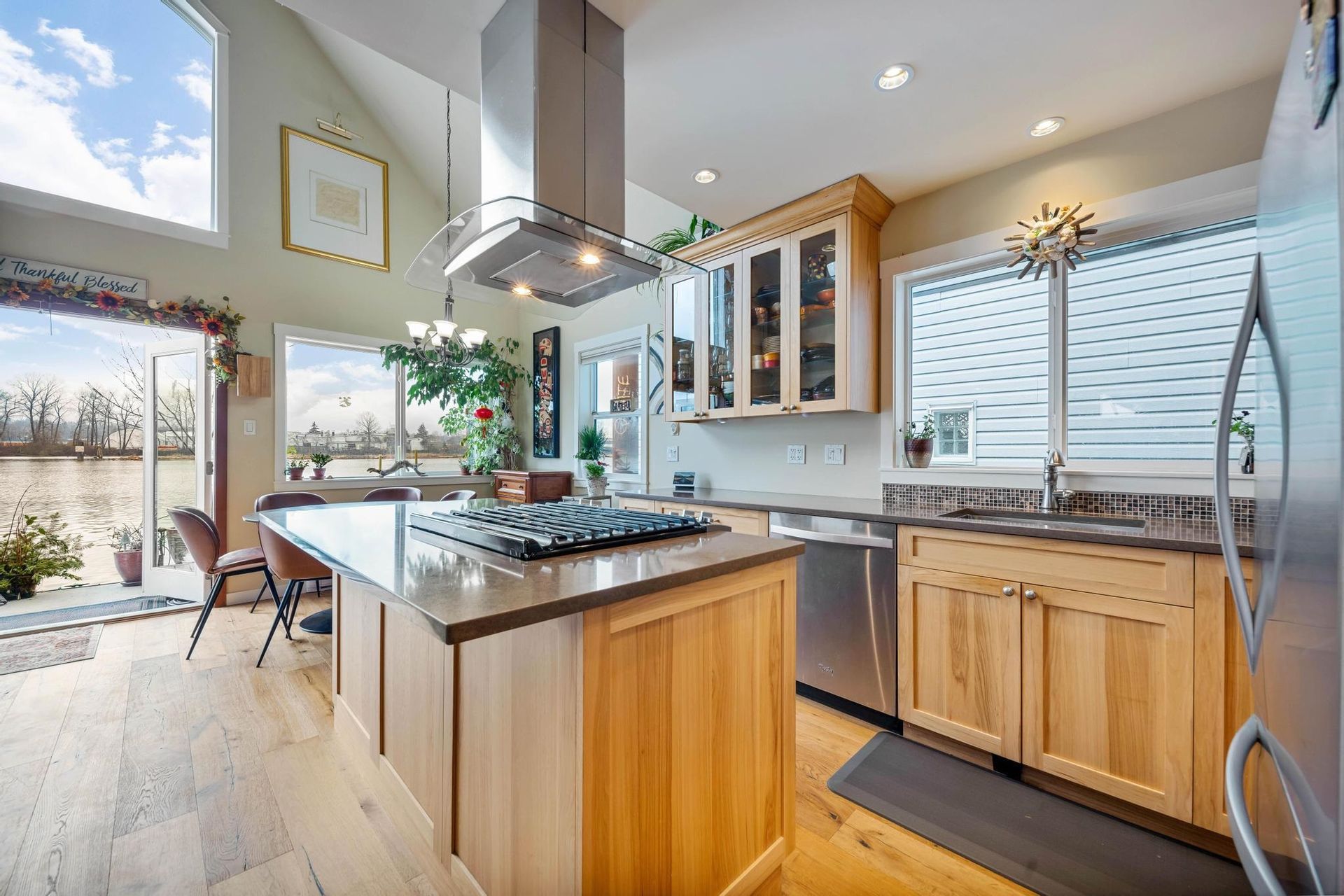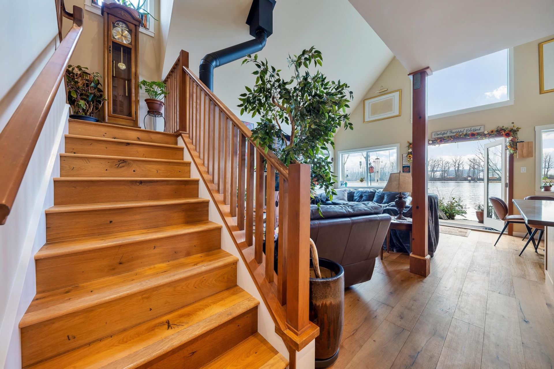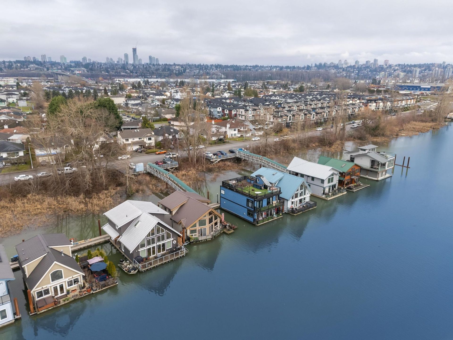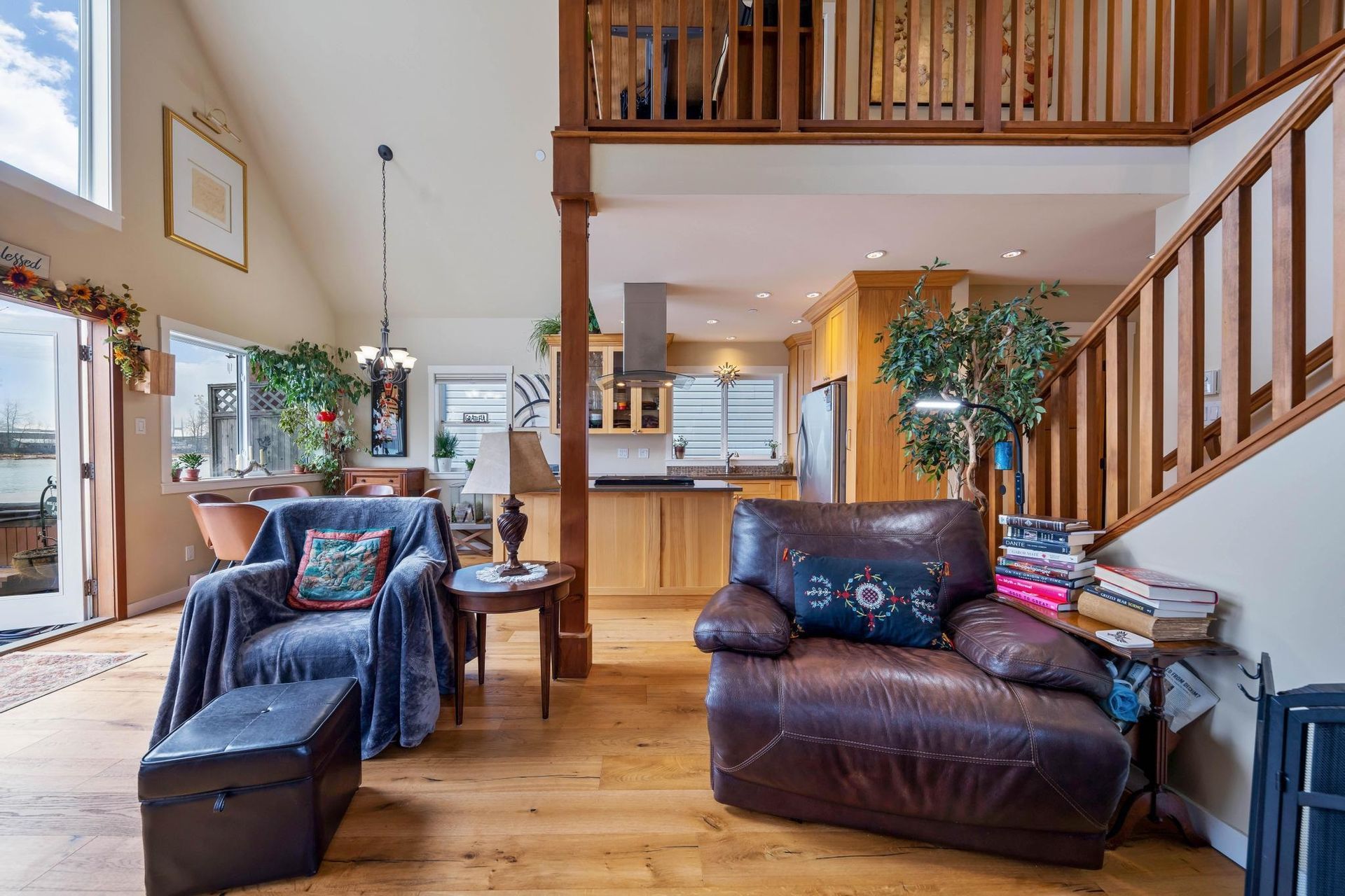 Rare opportunity to own a freehold water lot with a 3 bed 2 bath float home in an exclusive marina community. Just 10 years old, this AJIA Custom-built Craftsman offers vaulted ceilings, open living, and energy-efficient design that feels like 1500sf. Enjoy stunning sunrises and sunsets, or fish for all species of salmon and sturgeon right from your dock. Rich wood accents bring warmth and harmony with nature. Includes hot tub, float, kayaks, and boat—ready for your waterfront lifestyle. Host guests on the 450sf commercial float or relax in the hot tub with panoramic views. Located on a deeded bare land strata foreshore (no moorage fees), with 1 parking stall and ample street parking.