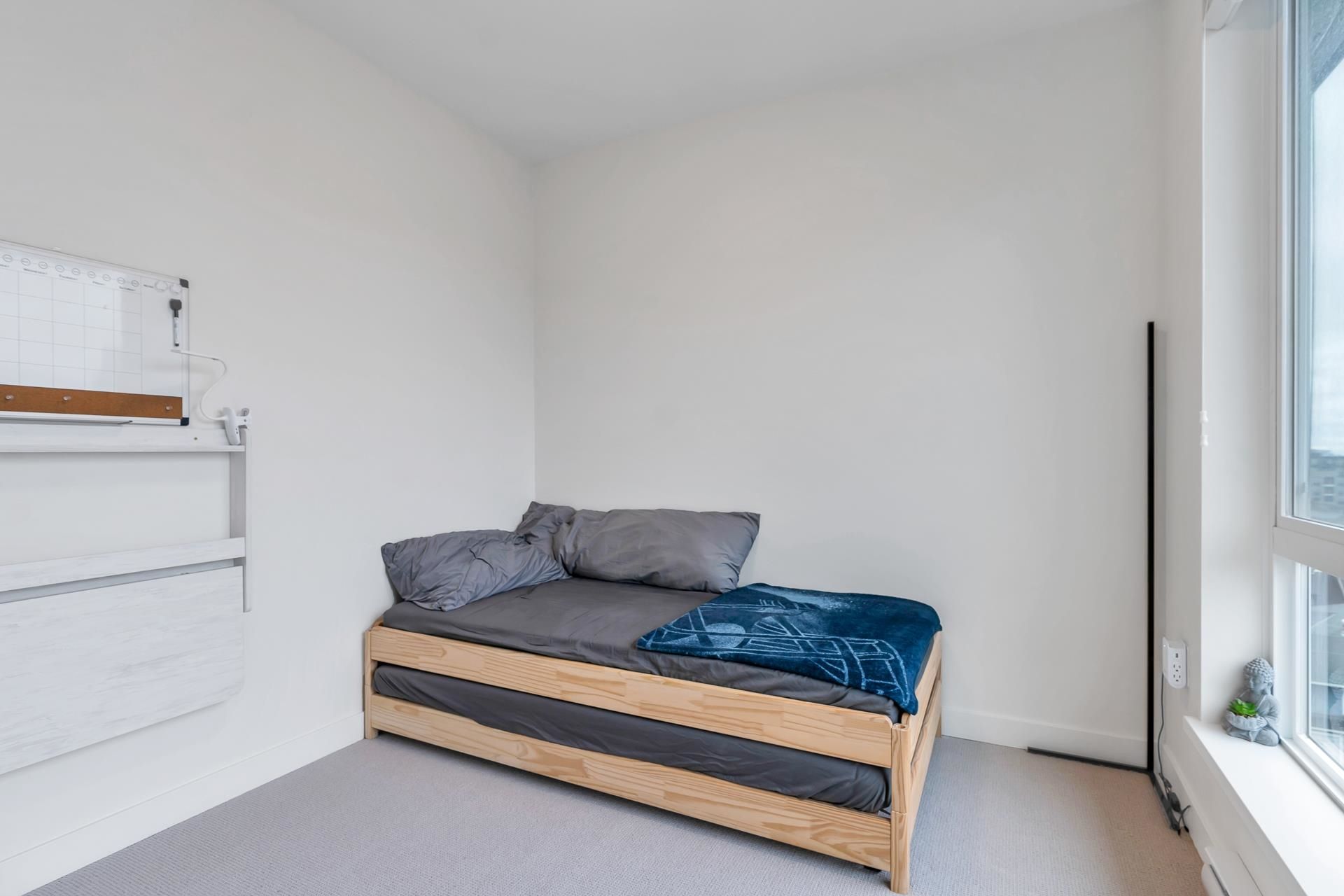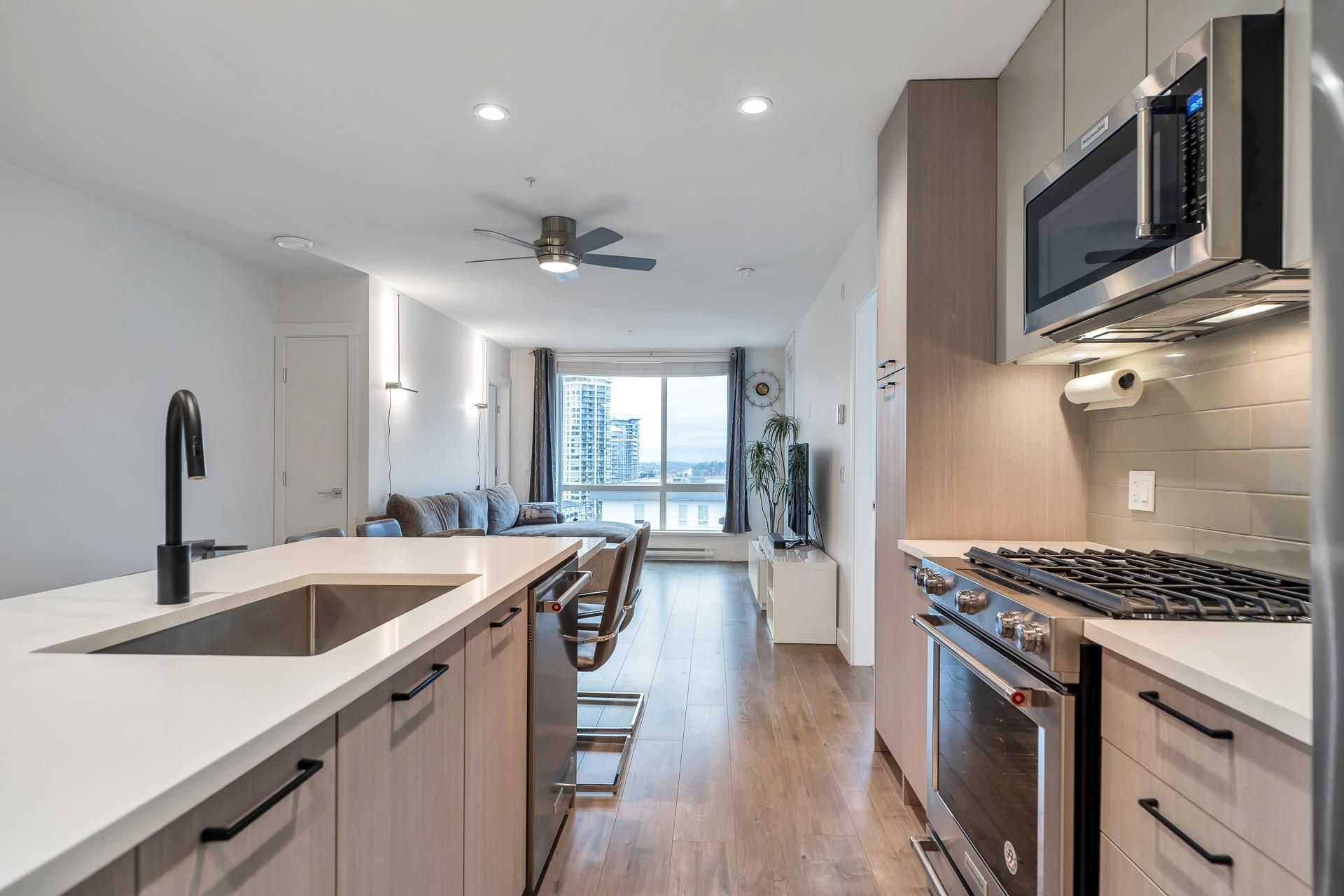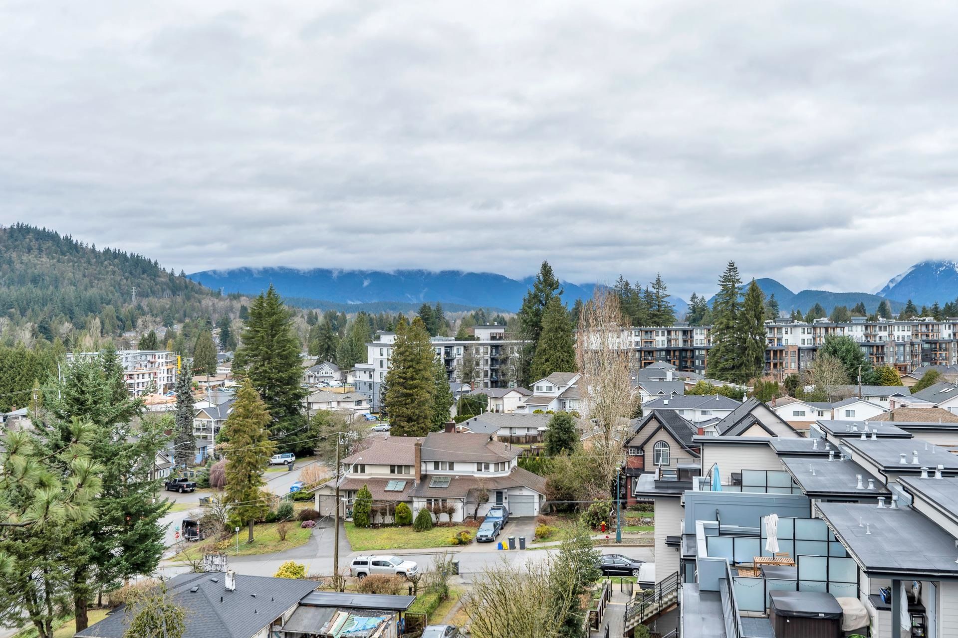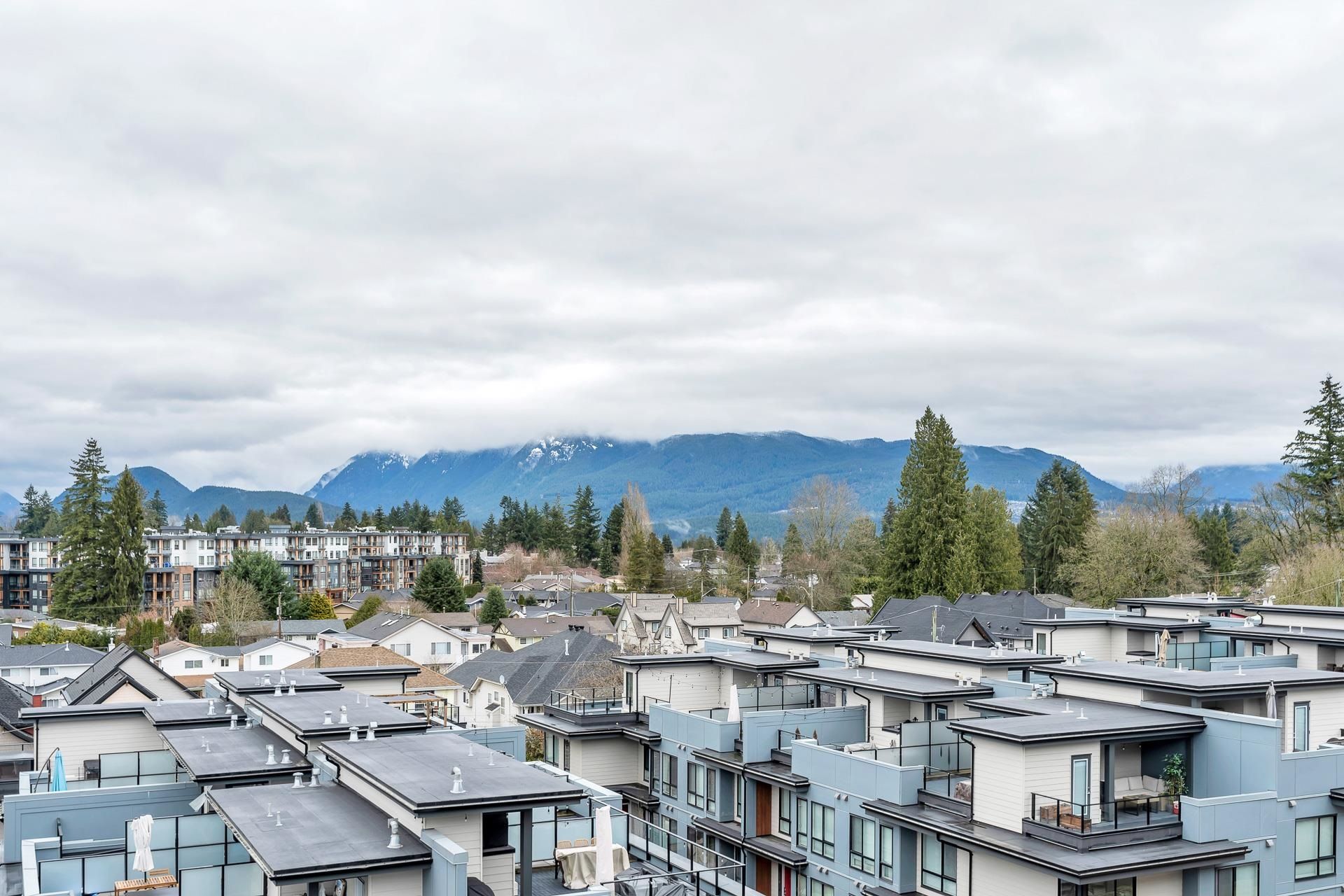 Welcome to YOUR NEW HOME situated in the desirable Coquitlam West Neighborhood. This penthouse unit features 2 bedrooms + 1 den, in addition to 2 bathrooms. The unit boasts a Private 521 Sq Ft rooftop patio on the 7th Floor, equipped with its own hot tub and stunning views of the city and mountains! This unit has a modern layout with an open concept design, along with an 82 Sq Ft balcony off the kitchen. The interior space is furnished with Premium Kitchen Aid stainless steel appliances, gas stove, garburator, and quartz countertops. The laundry is conveniently located within the suite! The property includes 2 standard parking spaces (1 is EV ready) and 2 storage lockers. It is ideally positioned just steps away from the Burquitlam sky train station, shopping centers, schools and parks!