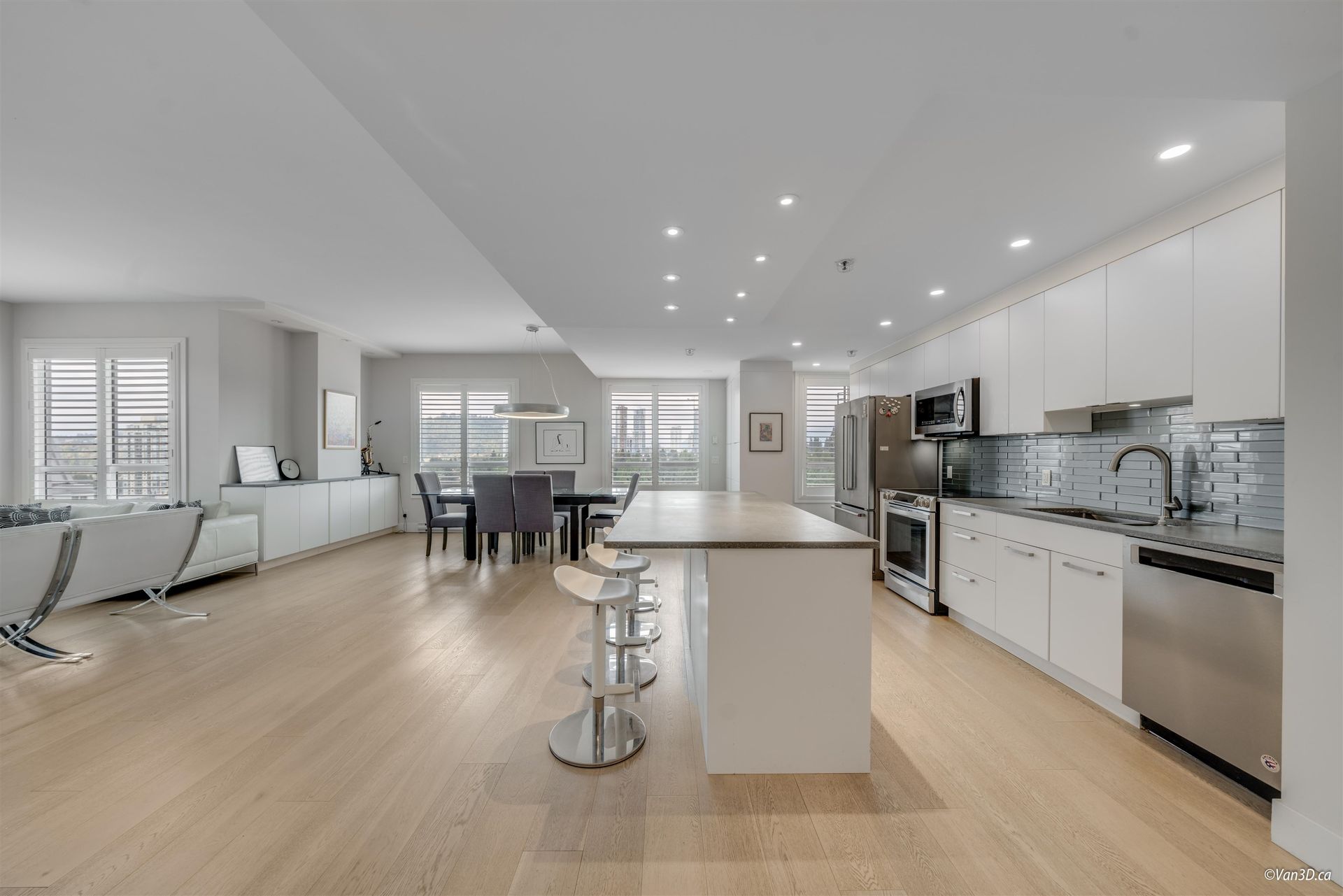 YOUR DREAM "PENTHOUSE" SHOW HOME IS HERE! IT'S ABSOLUTLEY STUNNING throughout with GREAT VIEWS and 1943 sq. ft.!! and comes with 2 x Large balconies for entertaining or relaxing. Over $180,000 spent on customizing. This 2 bedroom plus huge den (3rd bedroom) 2 bathroom. Features: New custom designed appointed kitchen and bathroom cabinets with quartz countertops, undermount sinks, Stainless Steel high end appliances, a large centre island. Both bedrooms are extremely generous is size with plenty of closet space. There is hardwood flooring, custom designed lighting & fixtures, beautiful custom white shutters throughout. Built in designer cabinetry and plenty of natural daylight throughout on this NW corner suite.